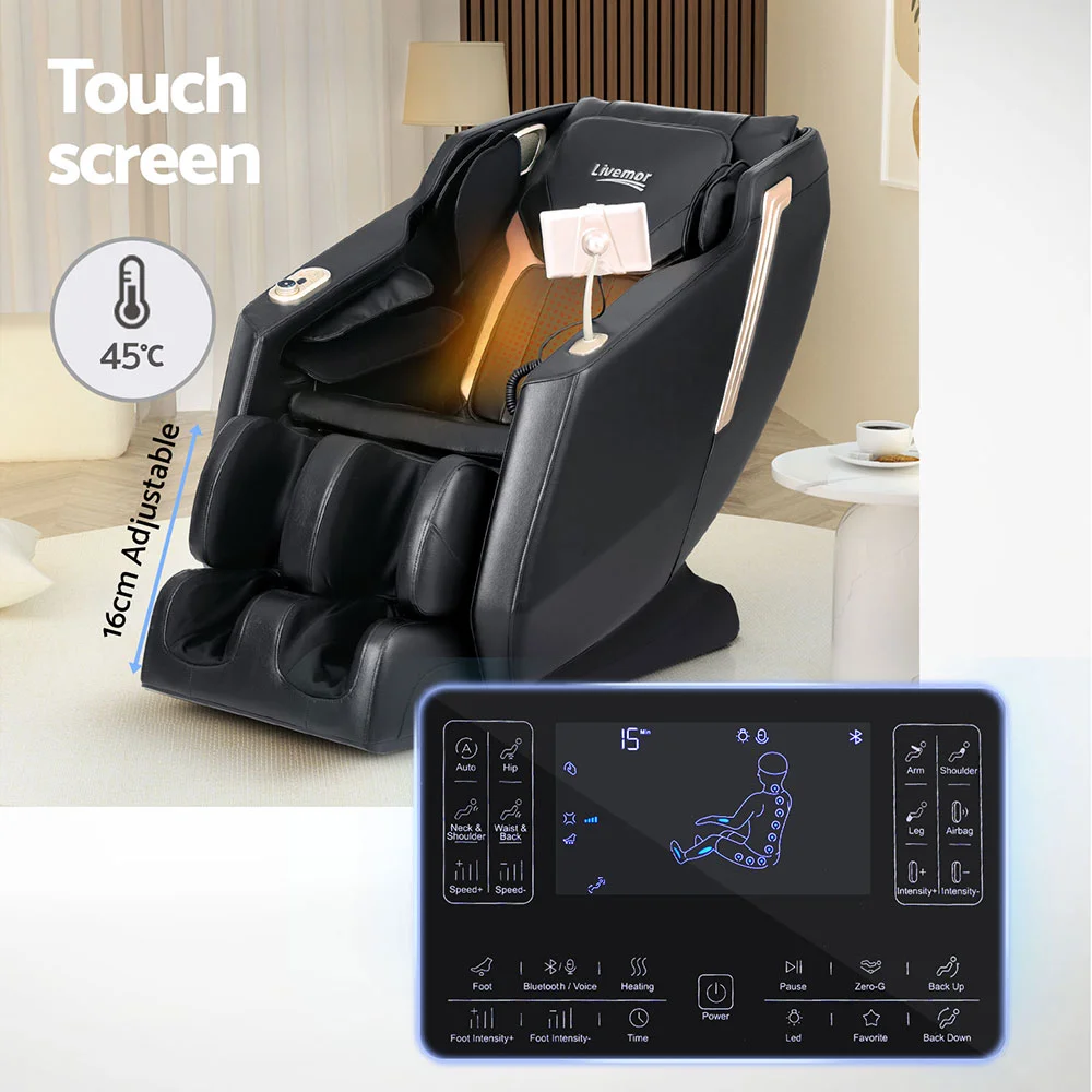 Using the latest smart massage technology, the Livemor Baird Electric Massage Chair is designed to deliver an out-of-this-world massage experience. A deeply relaxing experience that rivals the professionals, all from the comfort of home. The zero-gravity automatic recline is designed to relieve spine pressure and give you a sense of relaxing weightlessness. Nine unique massage spots target key areas of the neck, back and legs for a consistent massage using professional-style kneading techniques. Using six signature full-body automatic programs, three levels of strength in the foot rollers and airbags, and various speed adjustments, you can tailor the massage to your exact specifications. Not only that, but you can enjoy ultimate relaxation with a heated massage function, AI voice control, a USB charger for your devices and built-in Bluetooth speakers to listen to your favourite audiobooks and music. Why pay for the professionals when you can have the luxury of a premium massage in your living room? Get your Livemor Baird Electric Massage Chair today.