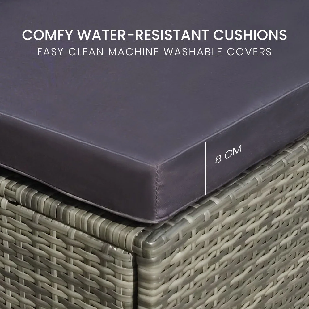 The sofa includes an ultra-comfy 8cm thick water-resistant seat cushion, generous backrest cushioning and a premium throw cushion. The high-quality UV-resistant handwoven Suntech wicker in Marl Grey weave has a premium natural textured look. Mix and match with other London Rattan modular pieces to create your own custom outdoor setting. You can set it up in whatever configuration works best for you, making this London Rattan outdoor corner sofa a great addition to any outdoor space.