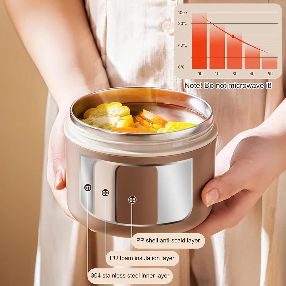 304 stainless steel inner layer provides food-safe and durable use