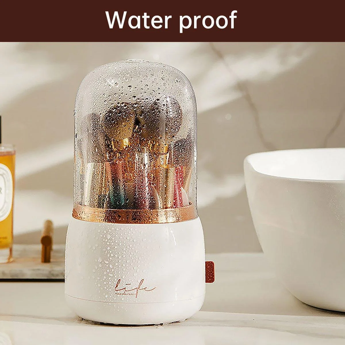 This luxurious cosmetic brush storage box is designed to keep your beauty essentials organized and dust-free. Featuring a sleek transparent dome lid, it provides 360-degree dust protection while ensuring easy access to your brushes, lipsticks, eyebrow pens, and other makeup tools. The compact, elegant design complements any vanity or bathroom setup, making it a stylish yet practical addition to your beauty routine. Crafted from durable, waterproof materials, this storage box is built to last, protecting your cosmetics from moisture and ensuring they stay in pristine condition.