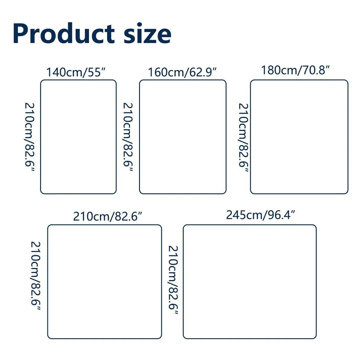 Queen: 210 x 210 cm