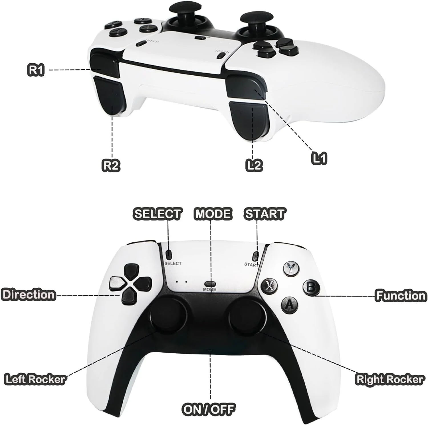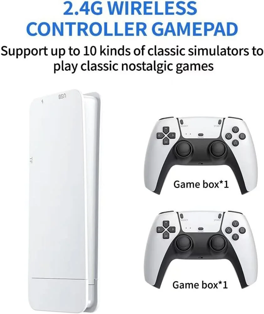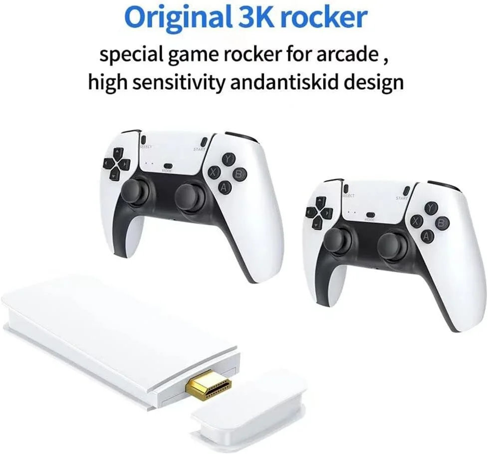 2.4GHz Dual Wireless ControllerD:ual 2.4G wireless controllers, high sensitivity, no complicated installation or setup required, perfect for video gamers of all ages. This game stick lengthens the handle, which feels better and is more convenient to operate; In addition, we have a search function - you can add a space to search for games; What's more, it supports wireless two-player games, and after adding a hub, it can support up to four people playing games together.