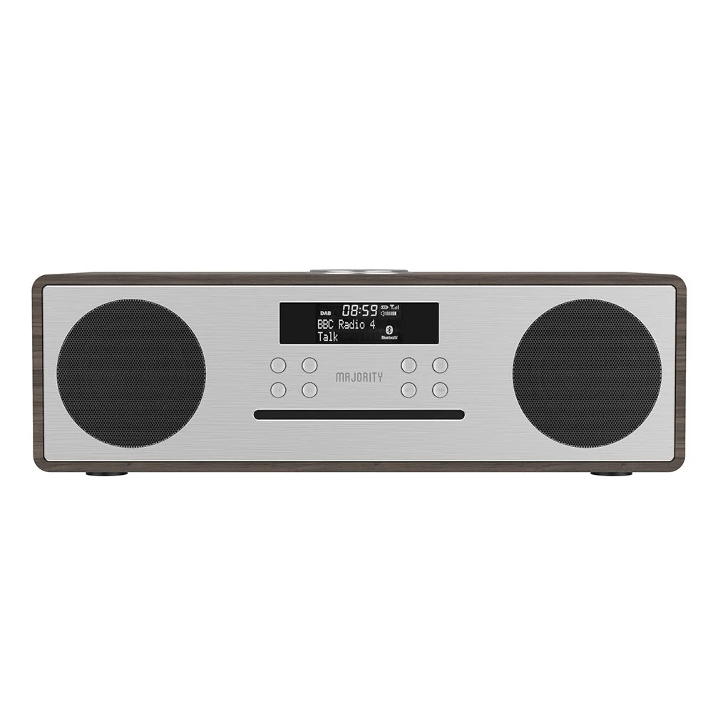 Blending classic with contemporary, the Majority Oakington DAB Radio CD Player will be blasting your favourite sounds from day to night. Completed with a wooden finish and the aluminium front is designed for easy use with its handy remote control for relaxed listening. With a built-in CD player for your favourite music or audiobook of the week, the Oakington is ready to upgrade your audio experience with a range of connections including USB, AUX, and Bluetooth. Delivering a wide range of local FM DAB radio plus Bluetooth, you’ll be spoiled for choice with sports commentary, political news, chat shows, and podcasts across the airwaves.