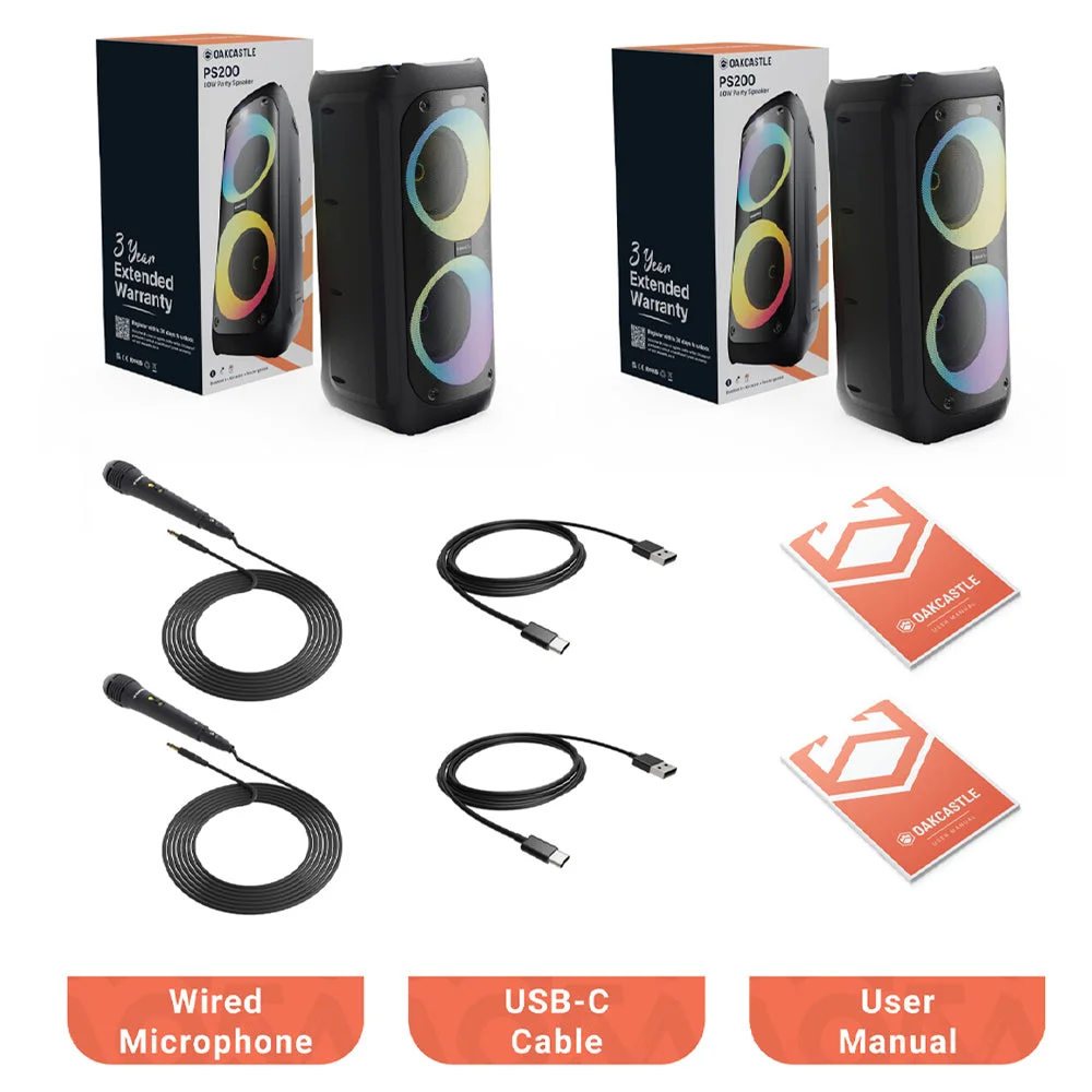 Majority PS200 -Bundled Party Speaker 100w Bluetooth Karaoke-DJ-Party-PA System - Black - Elevate parties with the PS200 Portable Speaker—unrivalled power, immersive sound, dynamic lights, a party on the go!