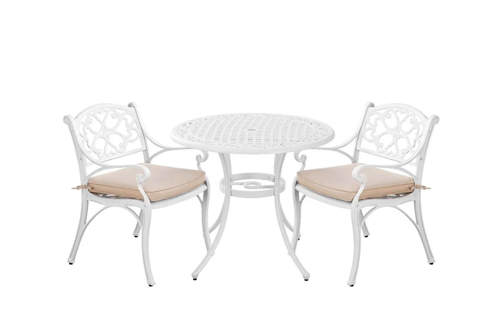 The Marco 3 Piece Cast Aluminium setting is lightweight but very sturdy. It is great on a balcony in a courtyard or in that cozy corner of your garden where you like to take a cup of tea or a cocktail with a friend.