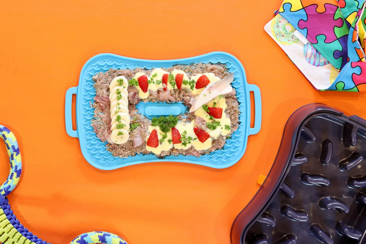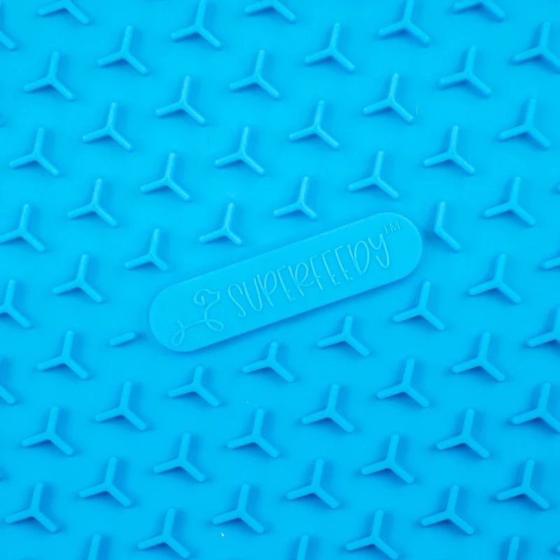 Made from thick, food-grade silicone that won’t curl or tear, it’s built to last through enthusiastic licking and regular dishwasher cycles. Use it as a standalone enrichment tool, a calming aid during bath time, or as a lid for your Super Feedy Slow Feeder Bowl to prep meals ahead or take food on the go. Simple, smart, and stress-reducing — this mat does it all.