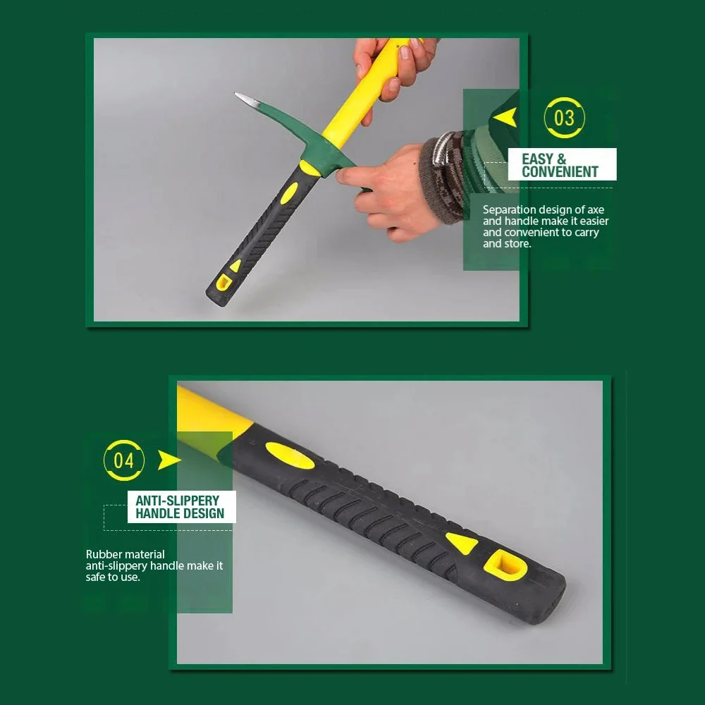 This Pickaxe is very good to use for Outdoor Camping Mountain, with a Fibreglass Handle and Small Size, easy to use for Garden Farm also.