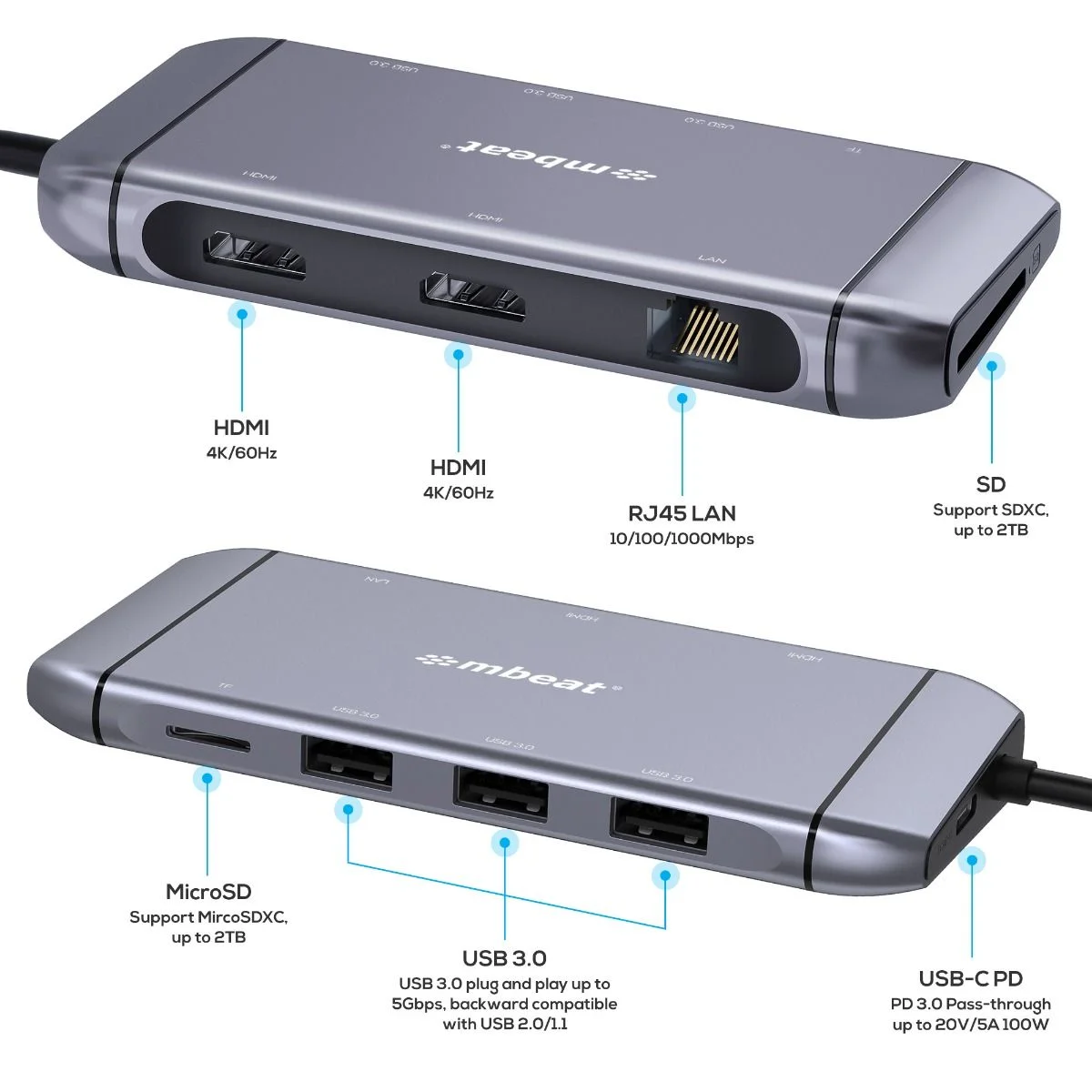 9-in-1 USB-C docking station, premium aluminium finish, built to last.