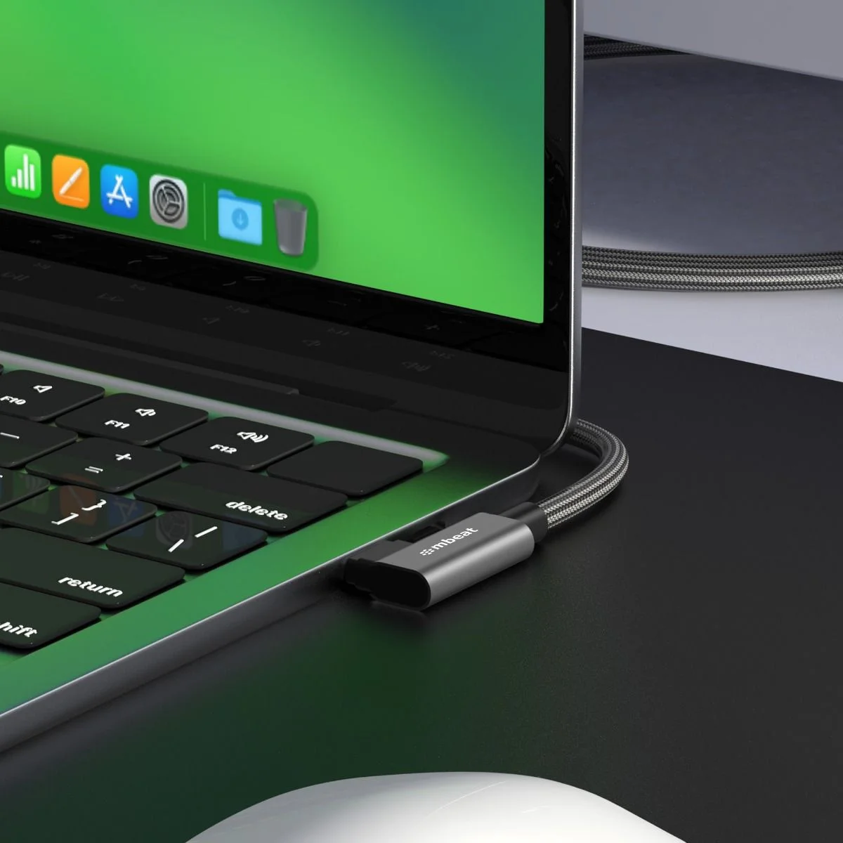 Introducing the mbeat Tough Link L-shape USB 3.2 Gen2 USB-C Cable, featuring a unique 90-degree bend design that enhances usability for gaming, video watching, and charging without obstruction. Perfect for fast PD charging, high-speed data transfer, and high-quality video transmission, it's your all-in-one high-performance connectivity companion.