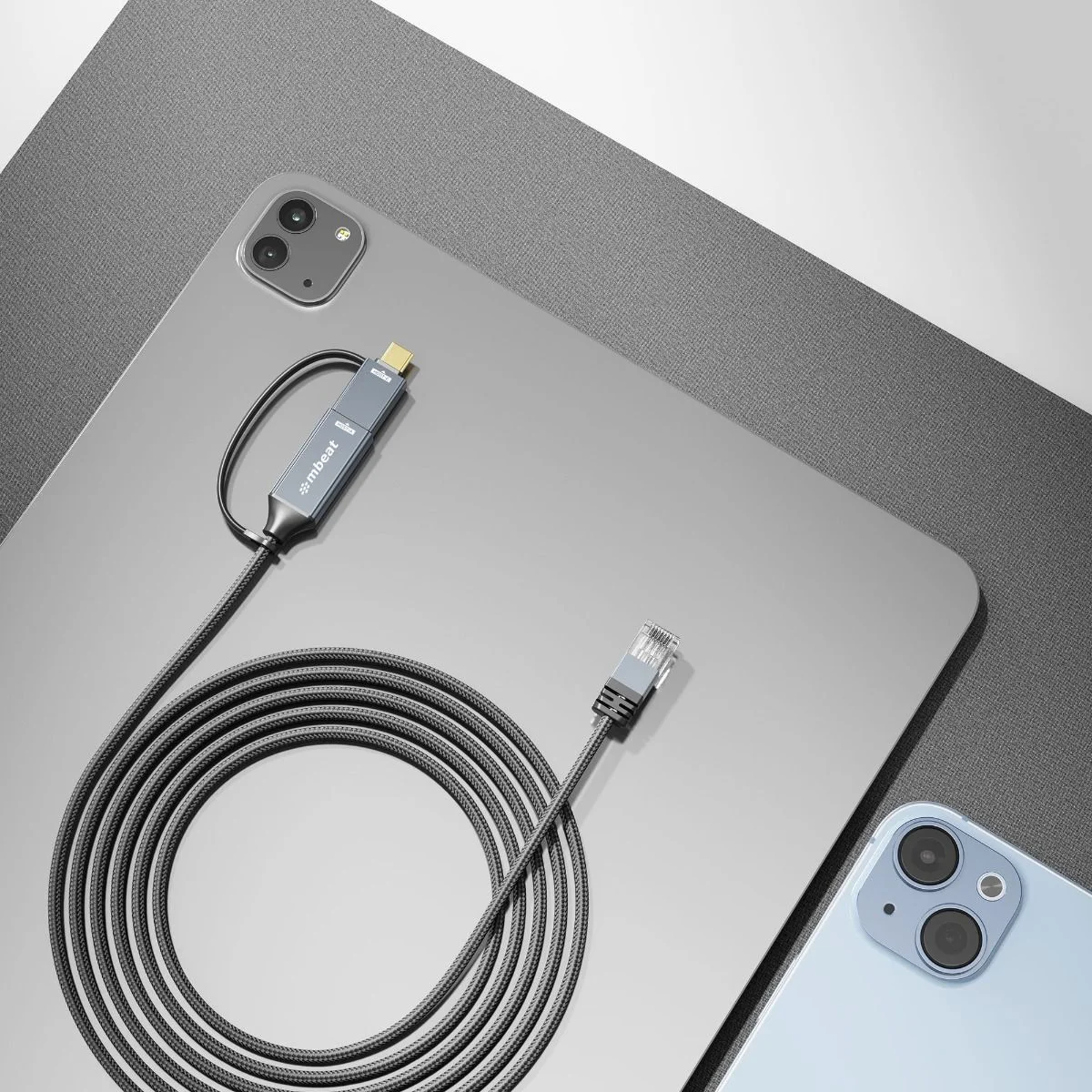 The mbeat Tough Link 2-in-1 USB USB-C to RJ45 Gigabit Ethernet Cable combines dual connectivity, durable design, and high-speed performance for seamless wired network access. Its perfect for professionals, gamers, and anyone needing reliable internet on USB-A and USB-C devices.