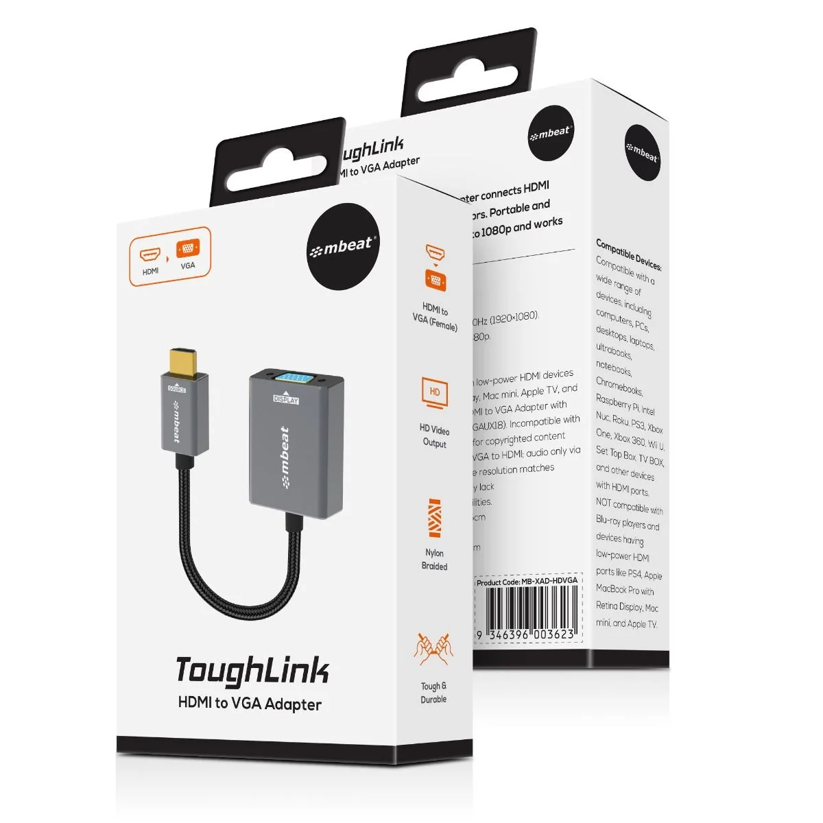 Experience the convenience of the mbeat Tough Link HDMI to VGA adapter, a lightweight and compact solution that easily fits into your bag or pocket. It's perfect for on-the-go business presentations with laptops and projectors or extending your desktop screens to VGA-enabled monitors or TVs.