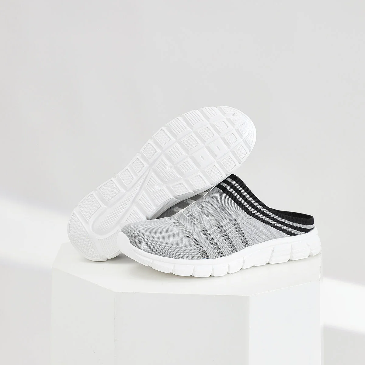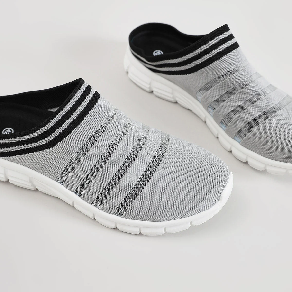 Designed for laid-back summer days, these lightweight slip-ons feature a soft knit upper and an easy backless design that makes them a breeze to wear. The skin-friendly material hugs your feet gently, while the flexible EVA sole provides cushioning for all-day comfort. With breathable construction and vibrant striped detailing, they’re your go-to choice for effortless style and cool, dry feet. (Matching ladie's version available!)