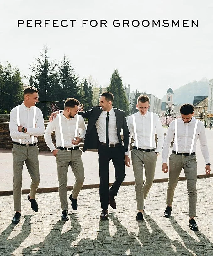 Keep your kit looking sharp and sitting comfortably with these men’s adjustable suspenders. Designed with strong clip-on fastenings and stretchy elastic, they’re a reliable choice for parties, weddings, dress-up events or everyday wear when you want a classic, tidy finish.