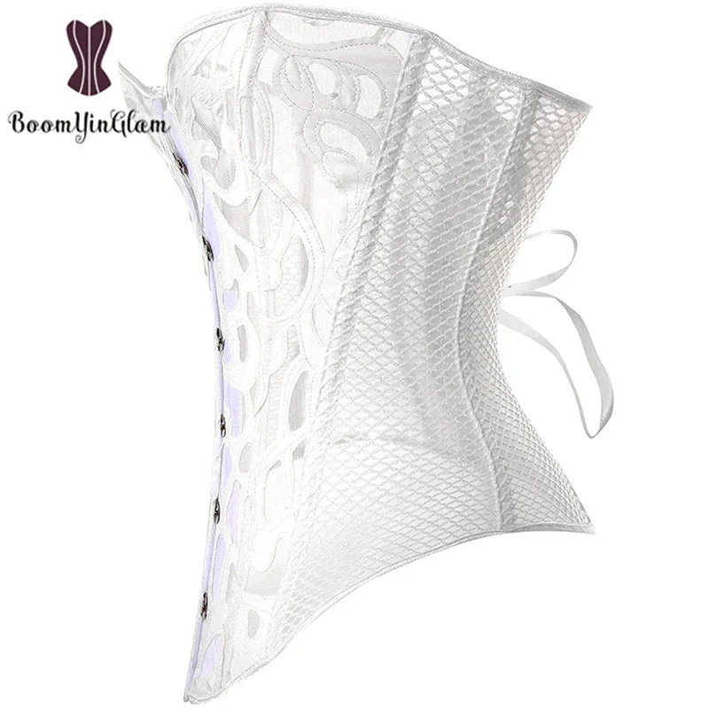 Mesh Net Corset Black White See Through Bustier For Alluring Slimming And Breathability - Black - 6Xl