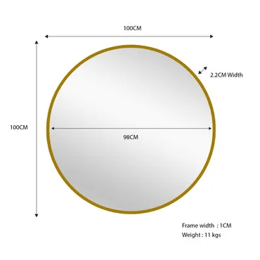 The Metal Round Mirror 100cm - Gold is a stylish and modern mirror that will add a touch of sophistication to any room in your home. The mirror features a sleek gold metal frame that adds a touch of elegance to the overall look of the mirror. The mirror is round in shape and measures 100cm in diameter.