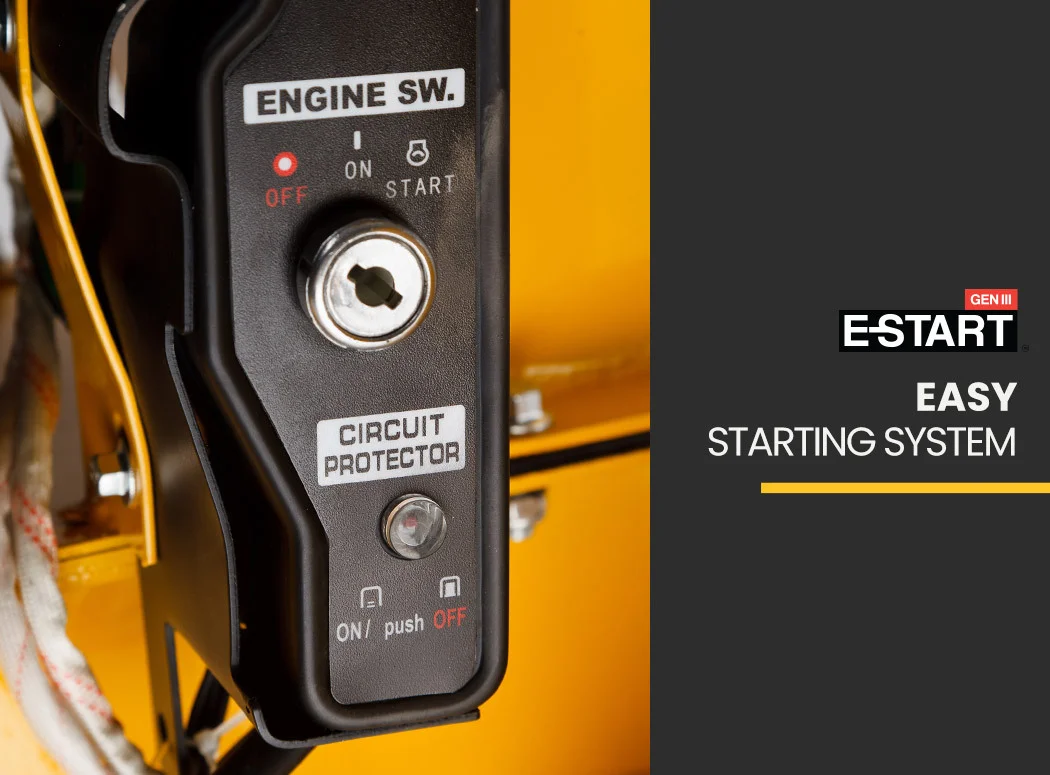 Whether you're a tradesmen, commercial gardener or handyman you'll love the convenience of electric start. With big 15” all-terrain tyres it'll go where you go. It'll handle any job with ease, including chipping branches of up to 3 inches in diameter. The side chute provides easy access for branches and the included pusher allows you to safely feed them right through. Bushy branches are no challenge thanks to the big hopper and you can control the direction of the mulch being expelled via the adjustable discharge throat.