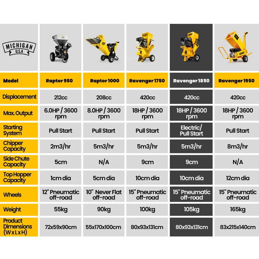 With a stonking true commercial-grade 420cc 18HP engine, the new Michigan RAVENGER 1850 delivers unrivalled levels of power, performance and reliability.