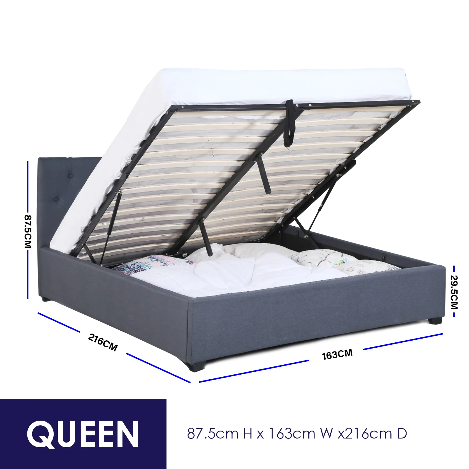 Queen: 216cm x 163cm x 87.5cm