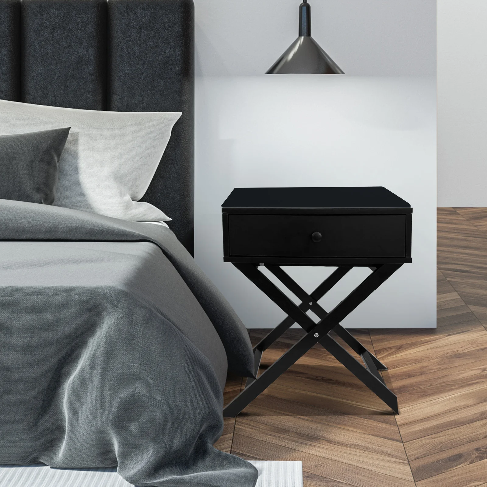 Place a beautiful lampshade or family photo frame on the top of the nightstand to complete the look of your bedside.