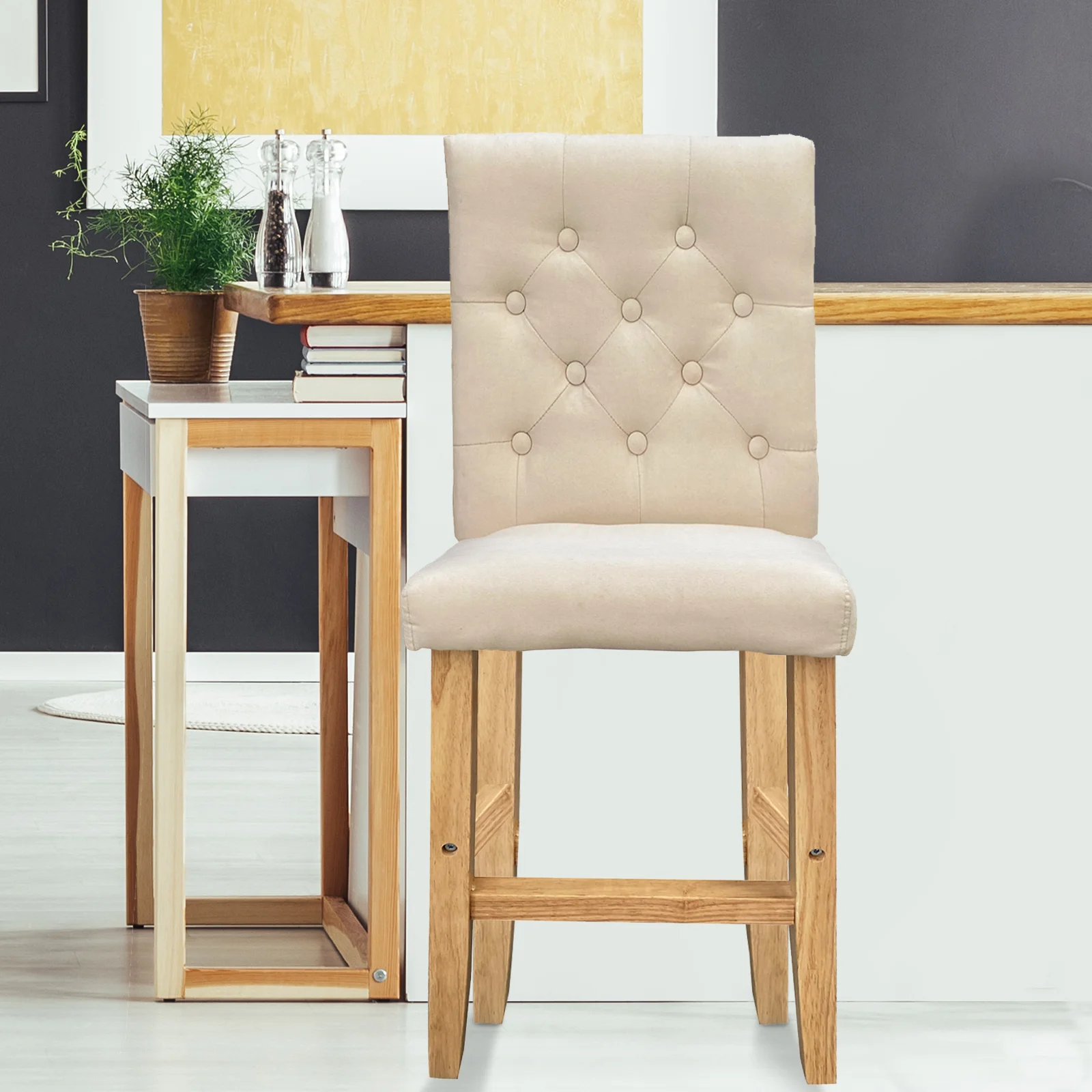 A classy bar stool featuring a modern cream linen and timber design, comfortable and classic tufted design that exudes the modern yet classic Hamptons style.