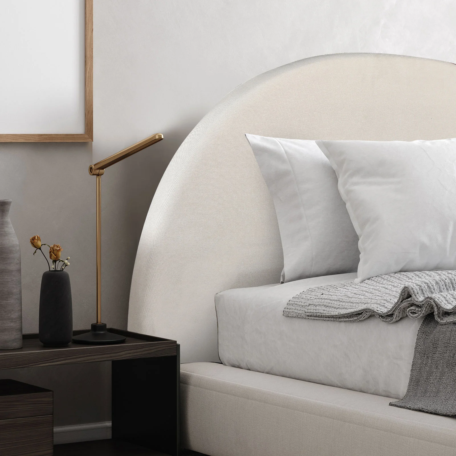 The bed head comes in a neutral tone and is easy to assemble.