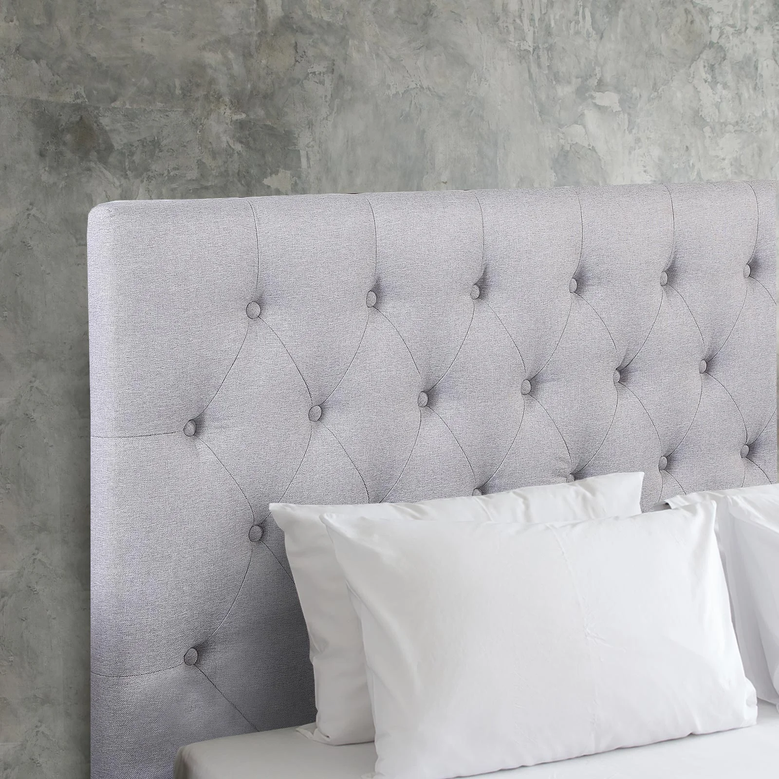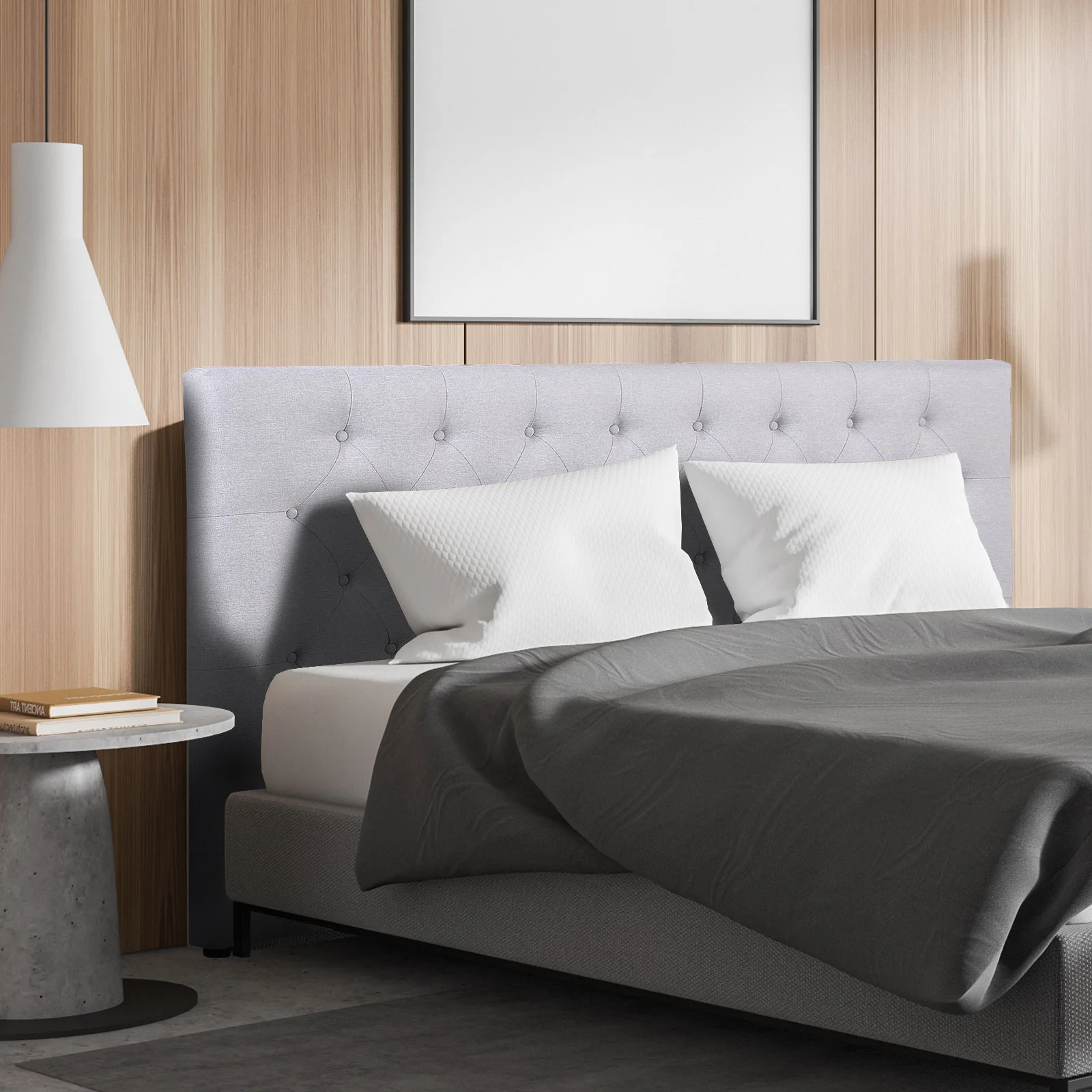 The bed head comes in a neutral tone and is easy to assemble.