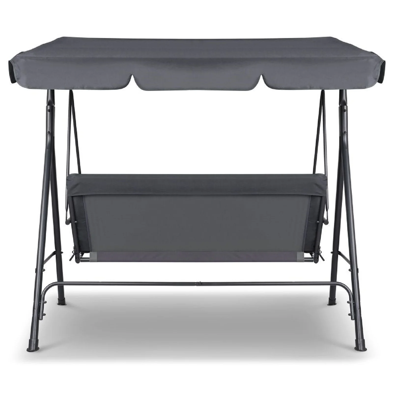 This Outdoor Swing Chair can seat up to three people and its waterproof and UV-resistant canopy provides the ultimate in all-day shade, while its waterproof and soft polyester seat upholstery provides both the ultimate in comfort and convenience.