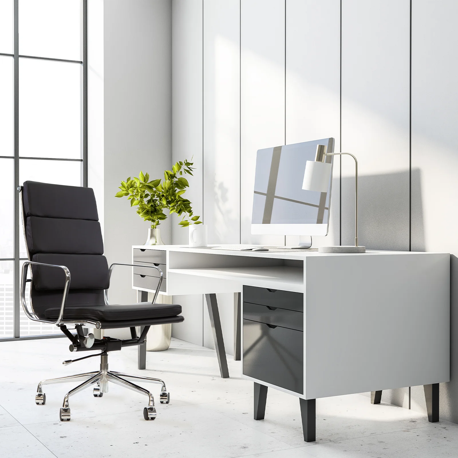 Take a seat with style and comfort with our Replica Eames design softly padded office chair.
