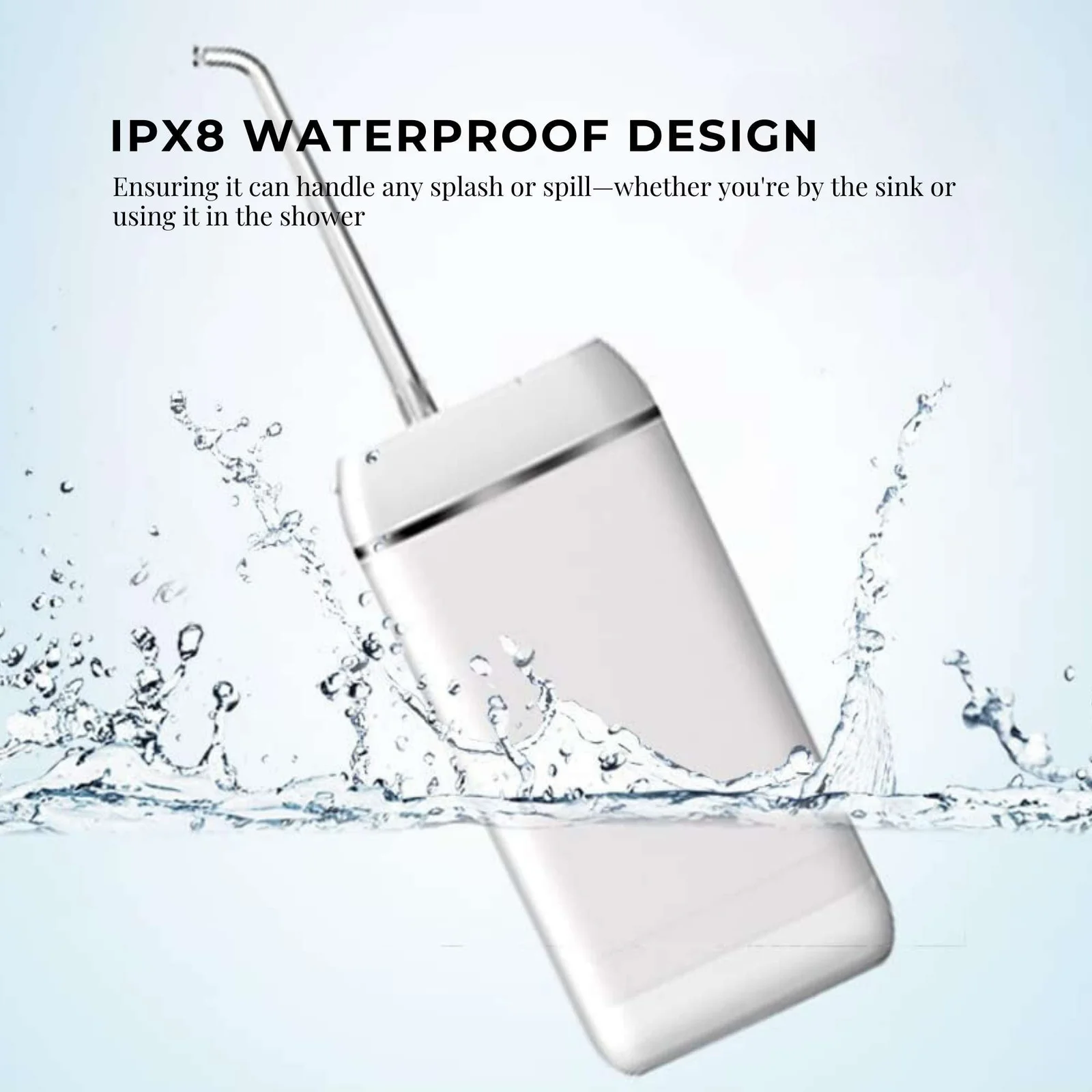 The Tooth Guardian Mini Water Flosser is your new travel essential! This sleek, portable, and cordless powerhouse is designed to keep your smile fresh on the go. With a long-lasting 1100 mAh lithium-ion battery, enjoy up to 3 weeks of effortless cleaning when used twice a day. Certified to the highest standards (FG-Food Grade, CE, RoHS, IPX8, FCC), it's built for safety and performance.
