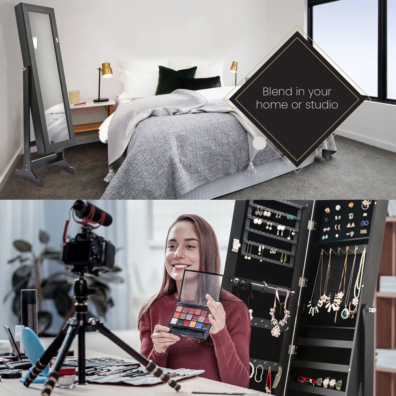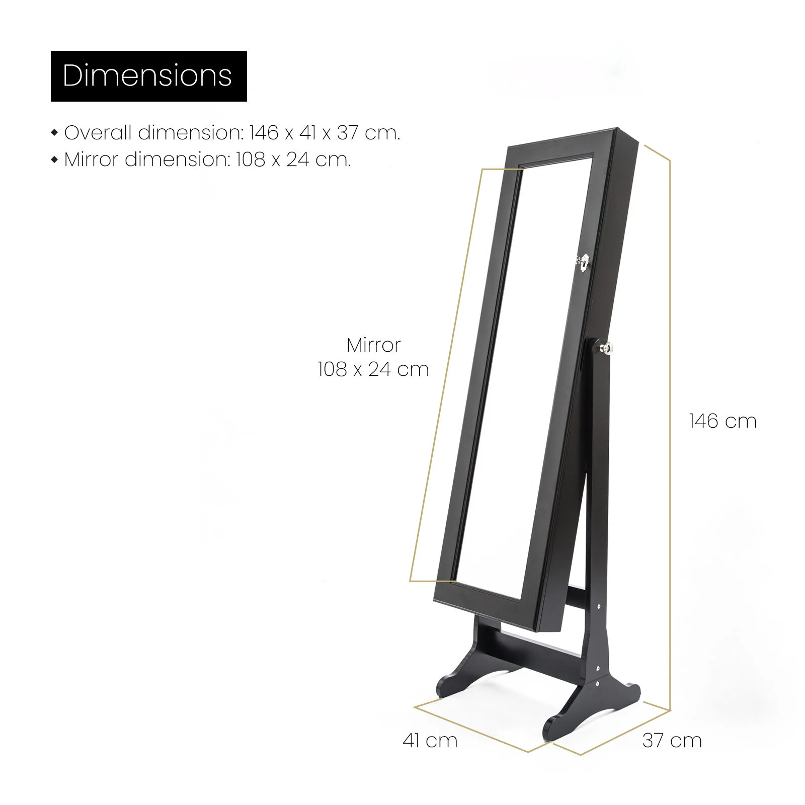 This high-quality La Bella LOWE Mirror Jewellery Cabinet is ideal for you if you need a compact and stylish storage option for your precious accessories! The mirror is a full-length dressing mirror so you can enjoy the convenience of having a mirror instantly available to check out how great your jewelleries fit with your dressing! It features 2 bottom drawers, more convenient for the storage. It will blend in well in any room and this is for sure a great solution if you want to keep your jewelleries and room tidy.