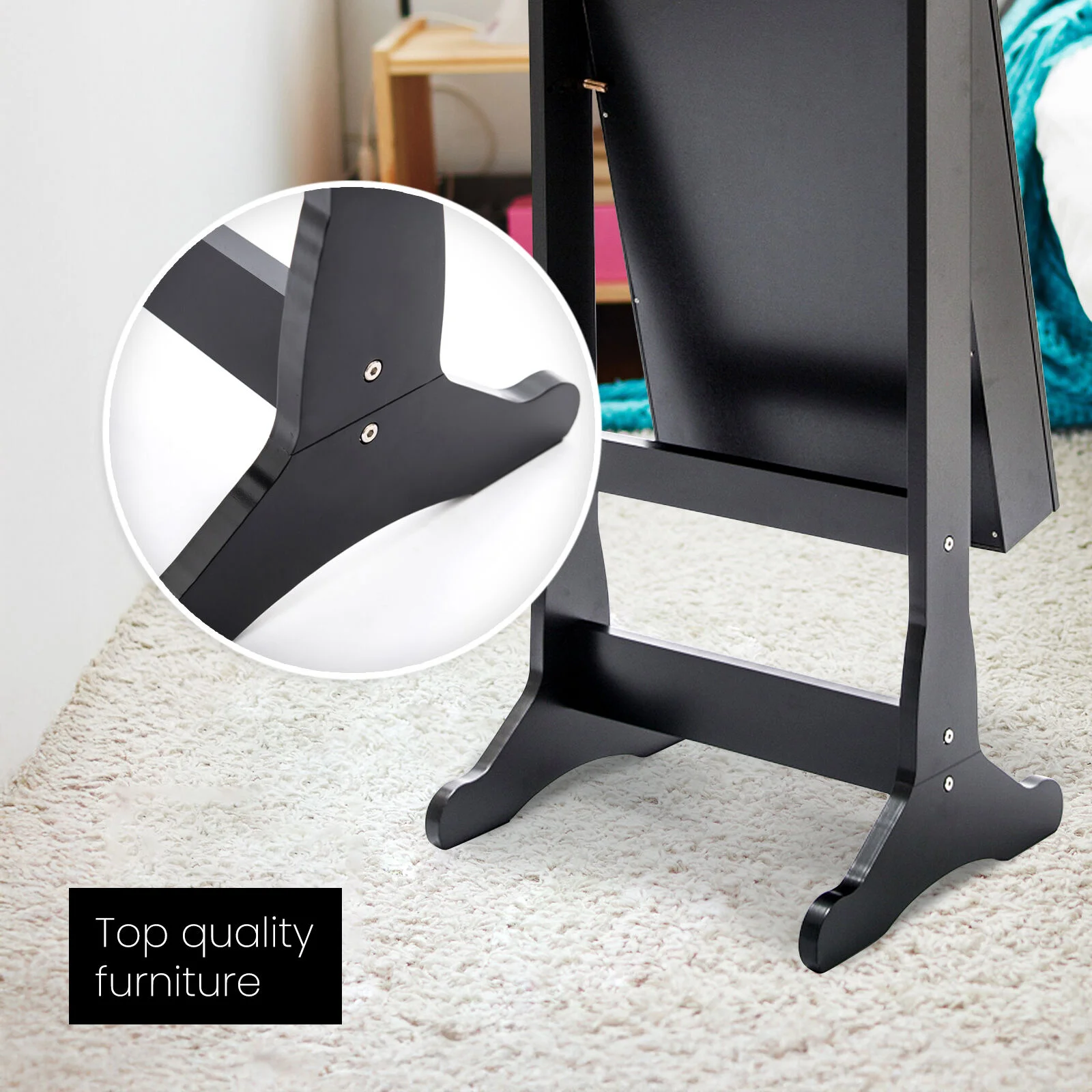 The mirror is crystal clear and easy to clean too! You can tilt it to different angles so you will not miss out anything when dressing up! There is a catch bar on the bottom, so it prevents the mirror from tilting too far forward. The cabinet is made of high-quality wood composites and veneers so it will sure give you a great service life!