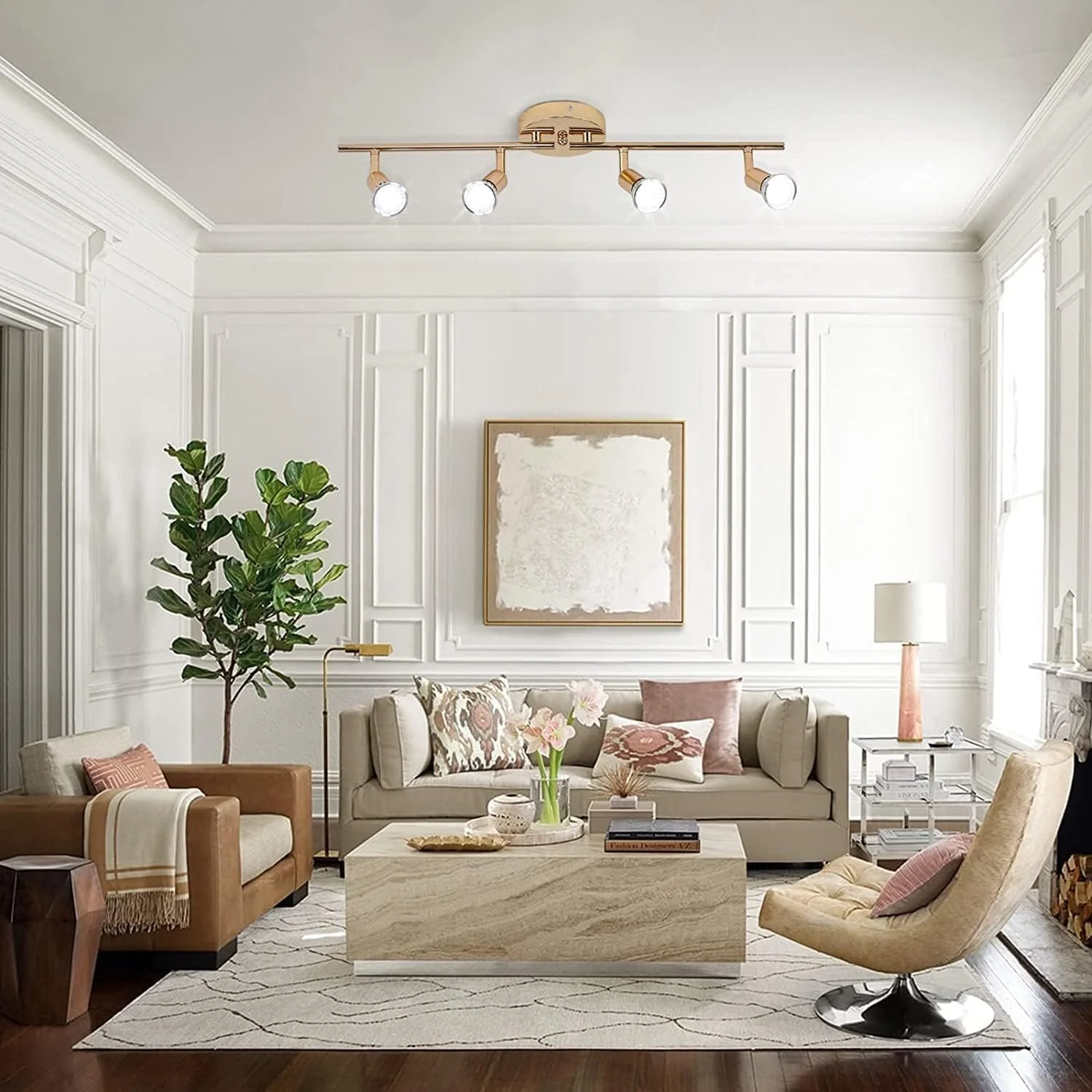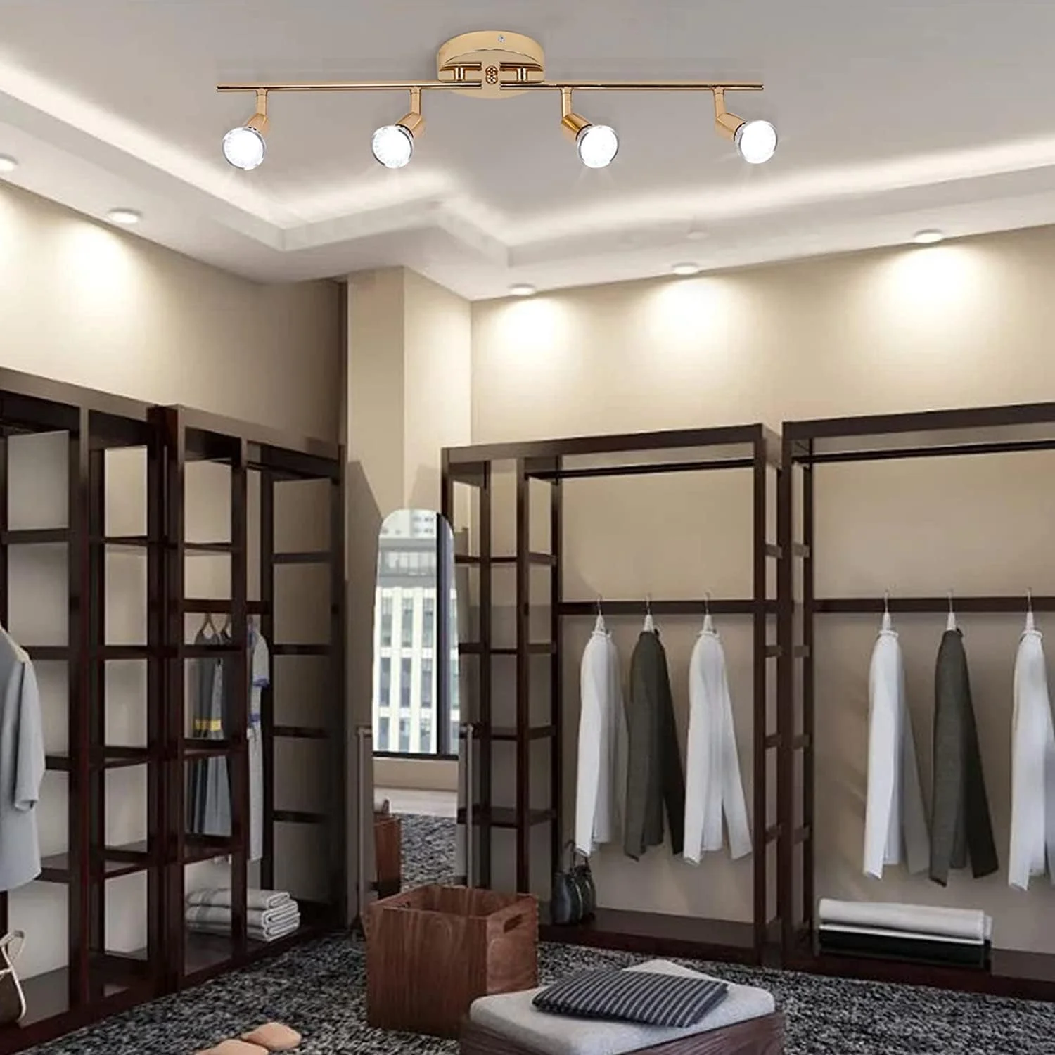 - This LED ceiling spotlight features four independently adjustable track heads, allowing you to focus the light exactly where you need it. Showcase artwork in an artist studio or gallery, or create the perfect ambiance in your living room, kitchen, sink, dining area, closet, restaurant, bar, or cafe. With its rotatable light heads, you can move the lights around to spot whatever you want to highlight.