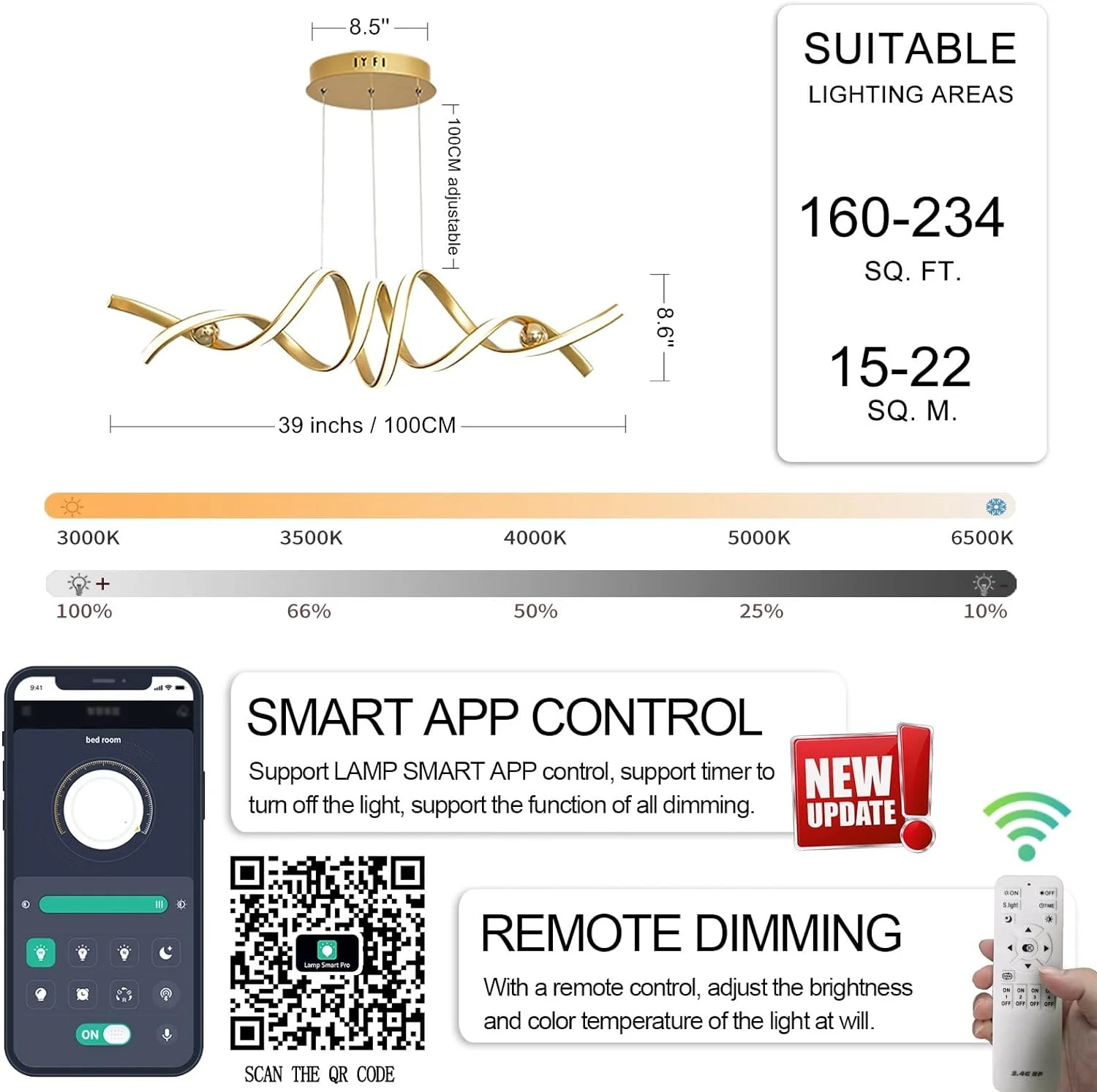Modern LED Ceiling Chandelier 75W Smart-Lamp (Golden Pendent Light)