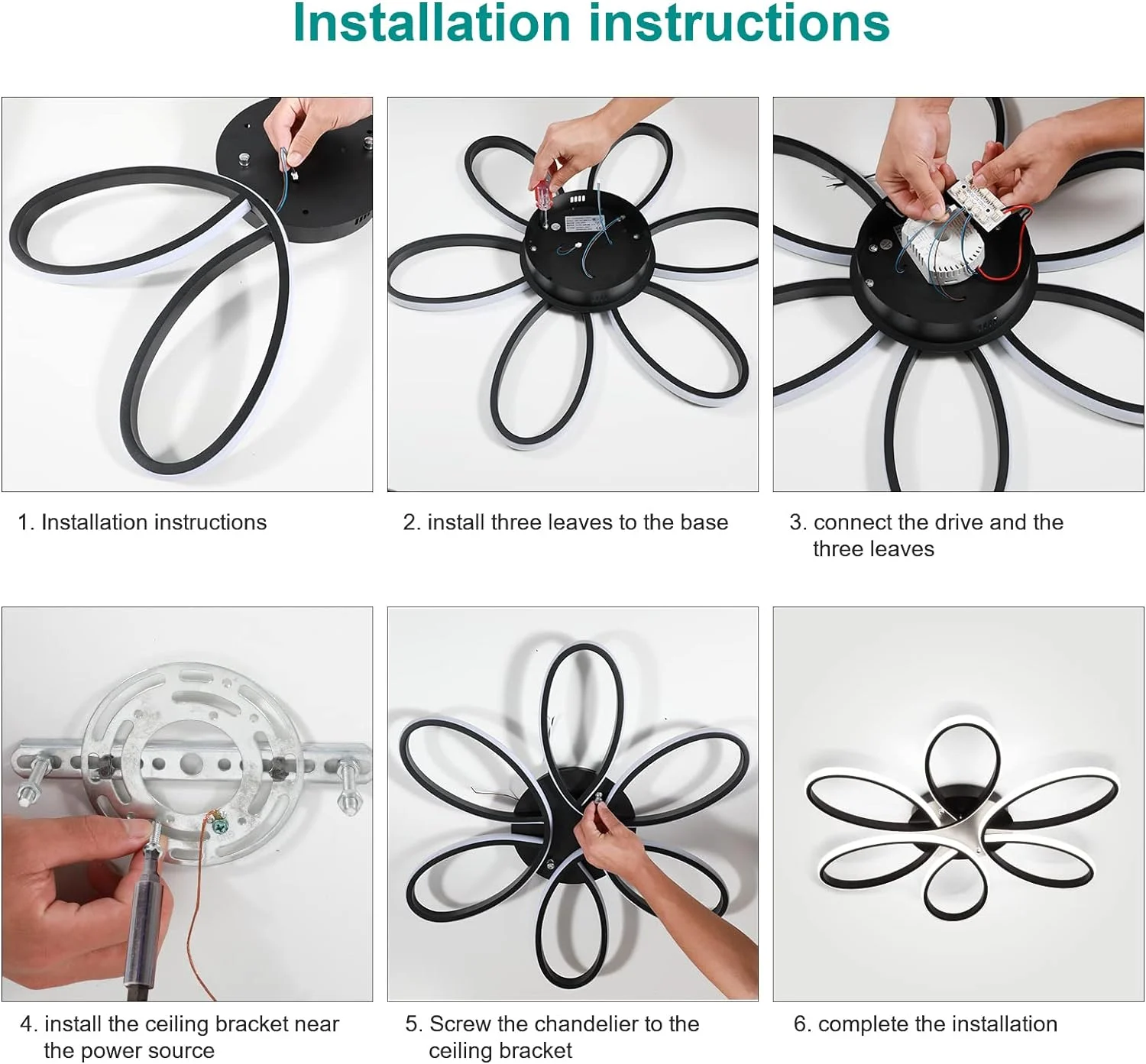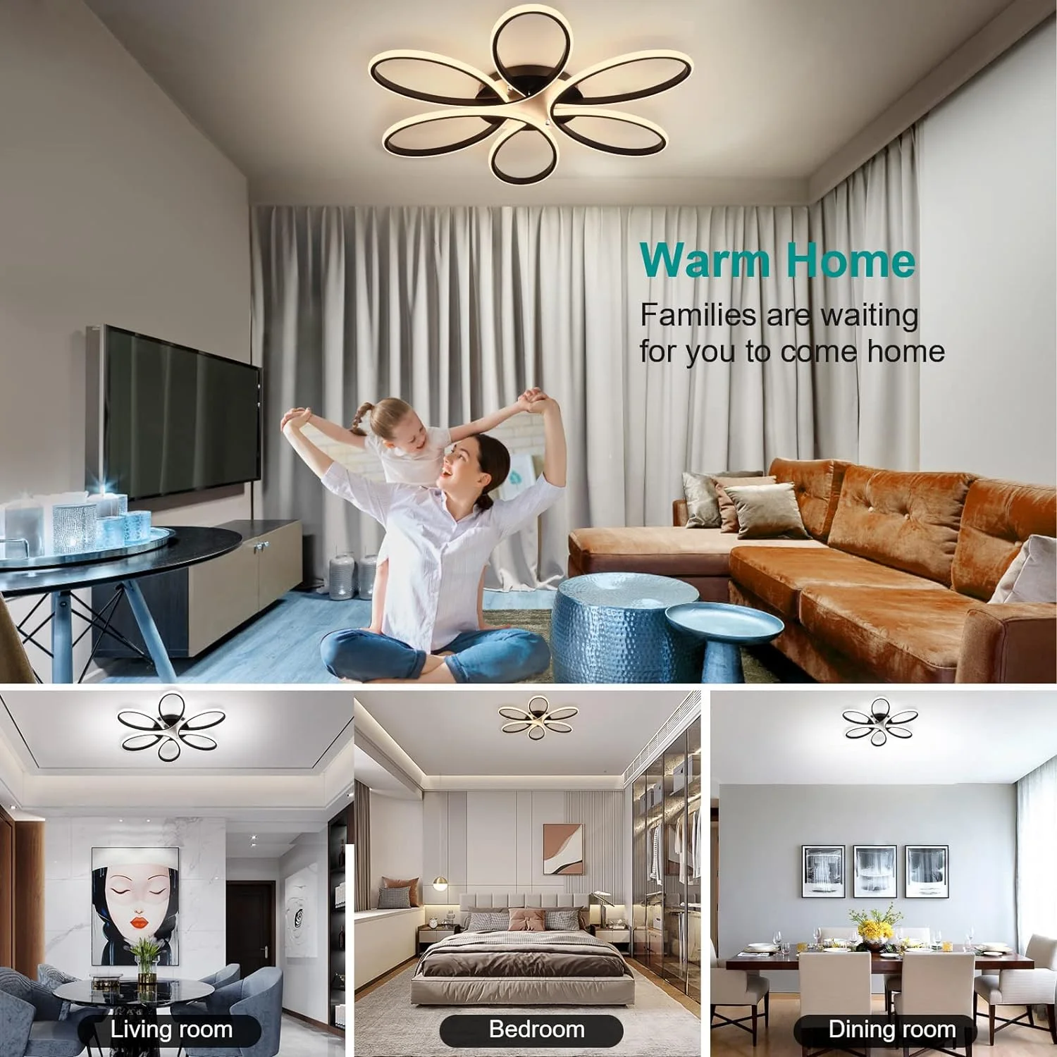 - Illuminate your home with this modern LED chandelier lighting fixture. Features a flush mount design and dimmable remote control for easy adjustment of brightness in any room of your home. Perfect for living rooms, bedrooms, dining rooms, studies, and kids rooms.