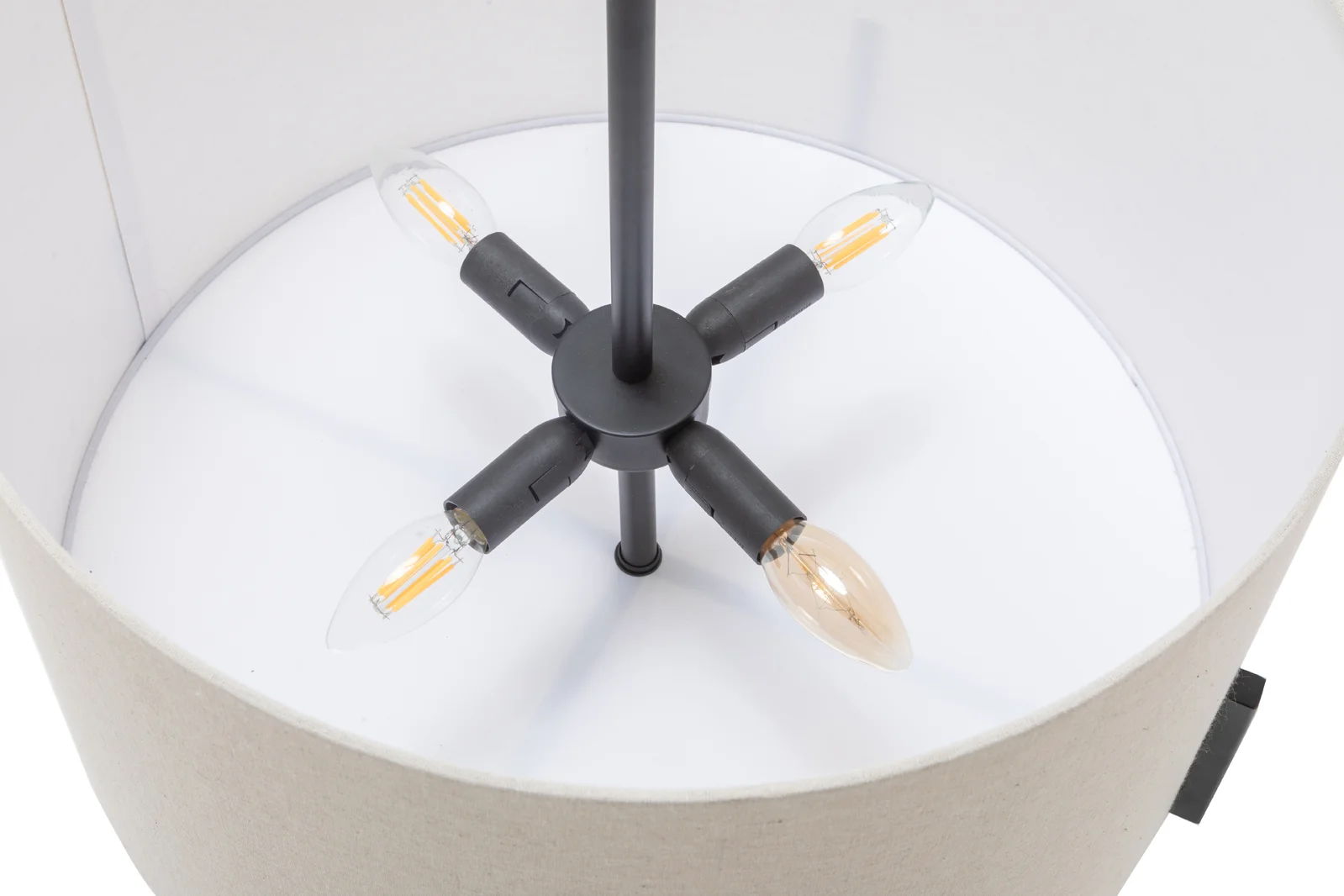 Modern Scandi Metal Hanging Pendant Lamp with Linen Shade - Matte Black