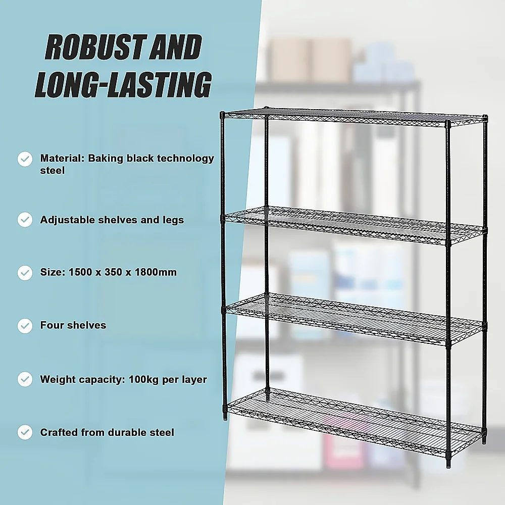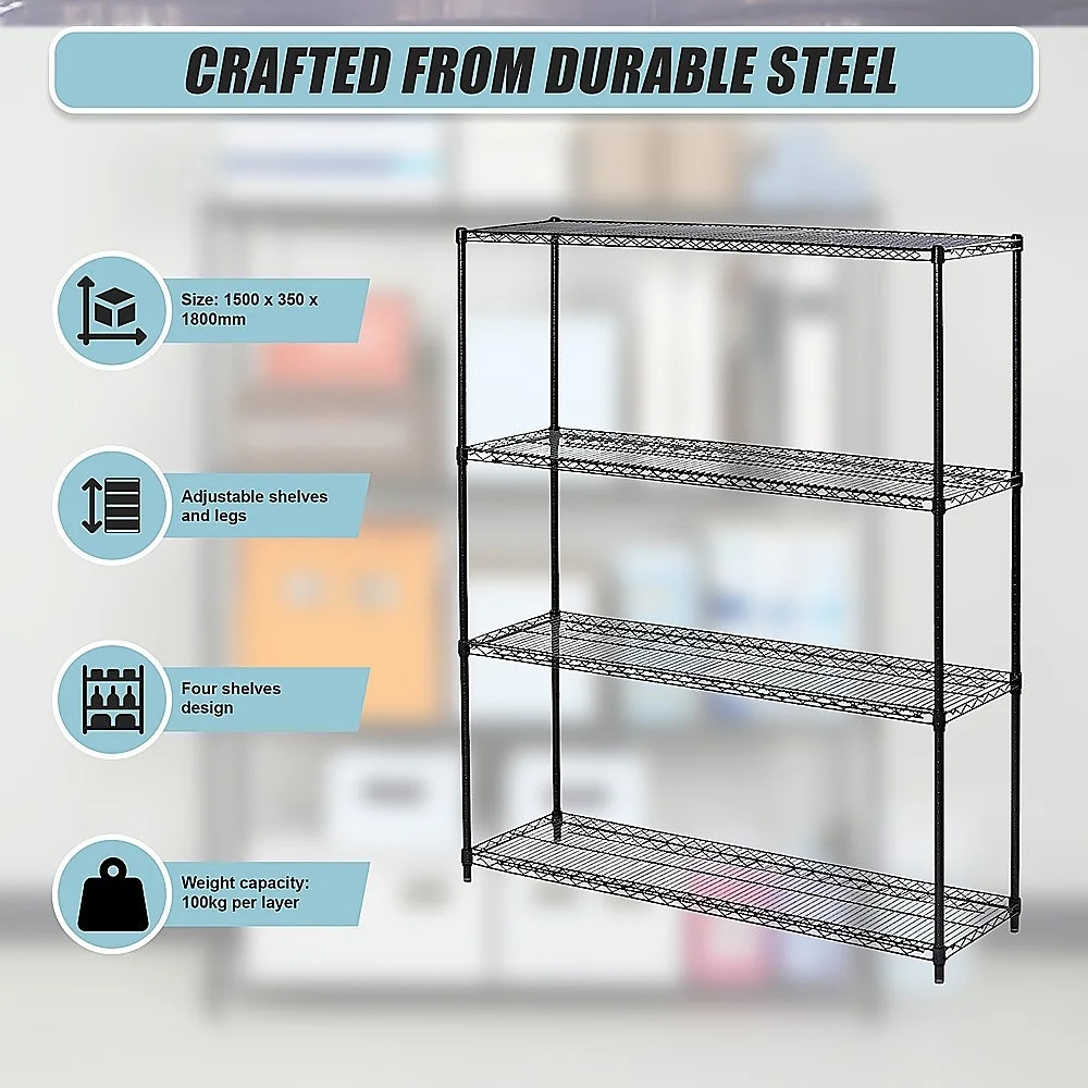 Crafted from durable steel, this four-shelf unit is built to withstand the test of time. Its spacious wireform shelves offer ample storage space for your tools and equipment, while ensuring they remain visible and easily accessible.