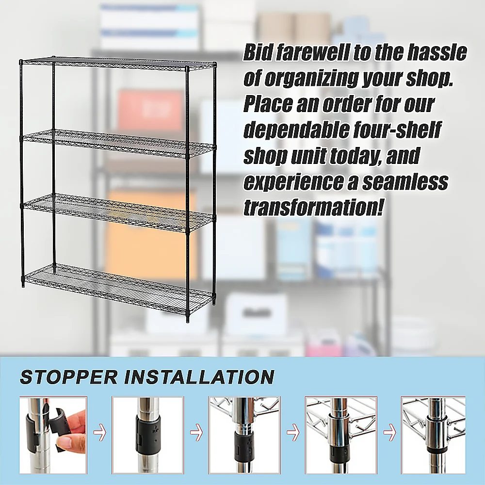 Bid farewell to the hassle of organizing your shop. Place an order for our dependable four-shelf shop unit today, and experience a seamless transformation!