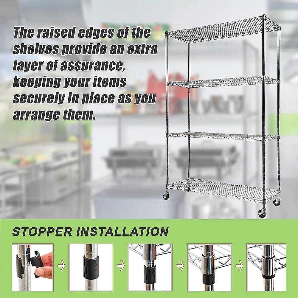 With adjustable legs, this unit ensures both security and stability. You can customize the shelf height to suit your specific needs, thanks to the adjustable shelves. The raised edges of the shelves provide an extra layer of assurance, keeping your items securely in place as you arrange them.