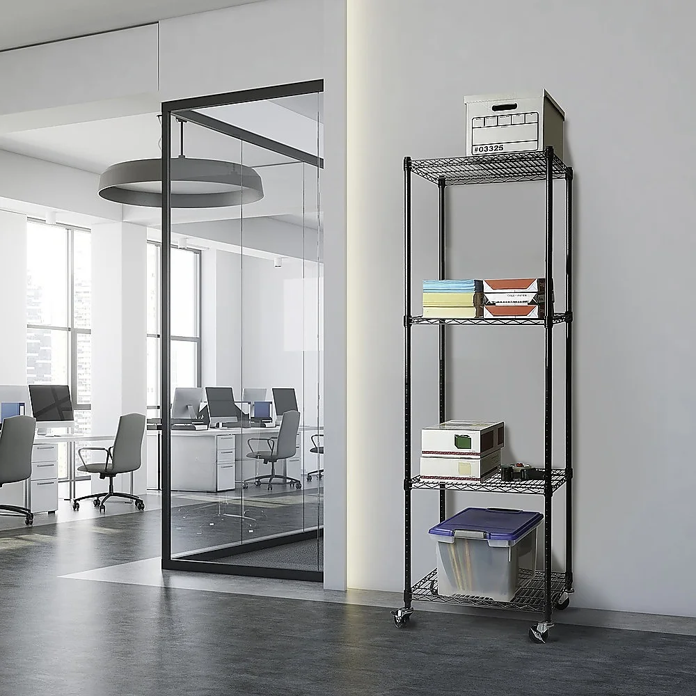 When it comes to strength and dependability, this four-shelf storage unit excels. Crafted from Syncrosteel plated steel, it is designed to withstand the test of time. The wire shelving adds a sense of lightness and mobility, granting you unmatched versatility to adapt to your ever-changing requirements.