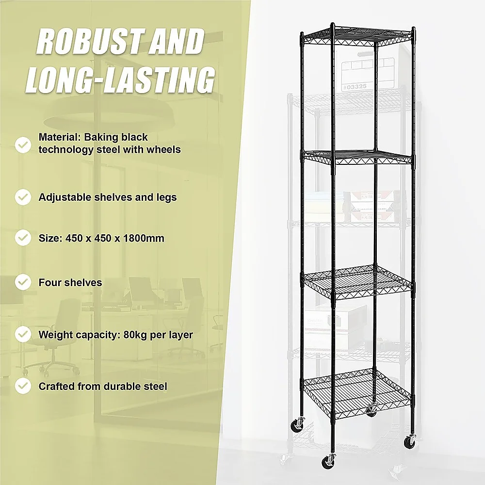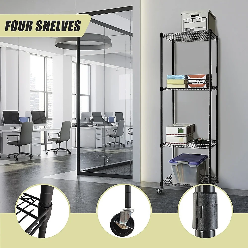 Say goodbye to your organization worries at home and work with the robust and long-lasting four-shelf storage unit.
