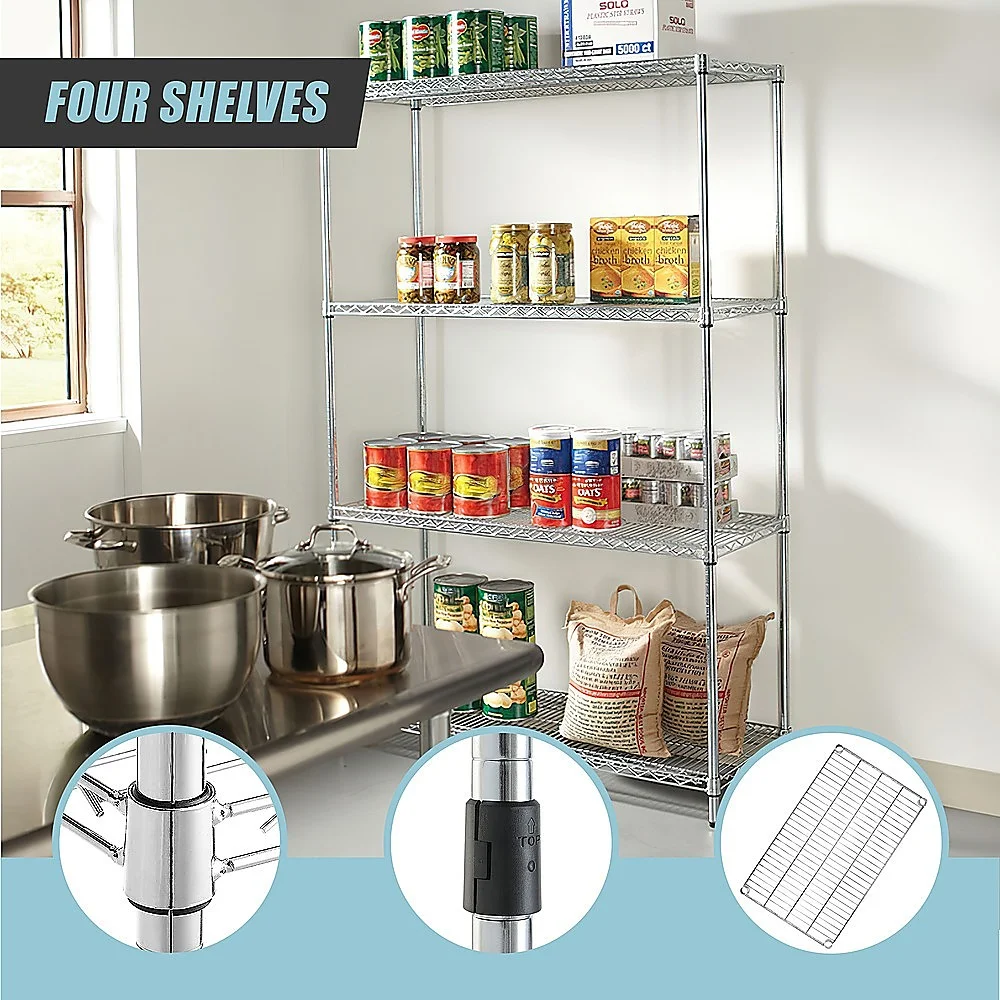 When it comes to strength and dependability, this four-shelf storage unit excels. Crafted from Syncrosteel plated steel, it is designed to withstand the test of time. The wire shelving adds a sense of lightness and mobility, granting you unmatched versatility to adapt to your ever-changing requirements.