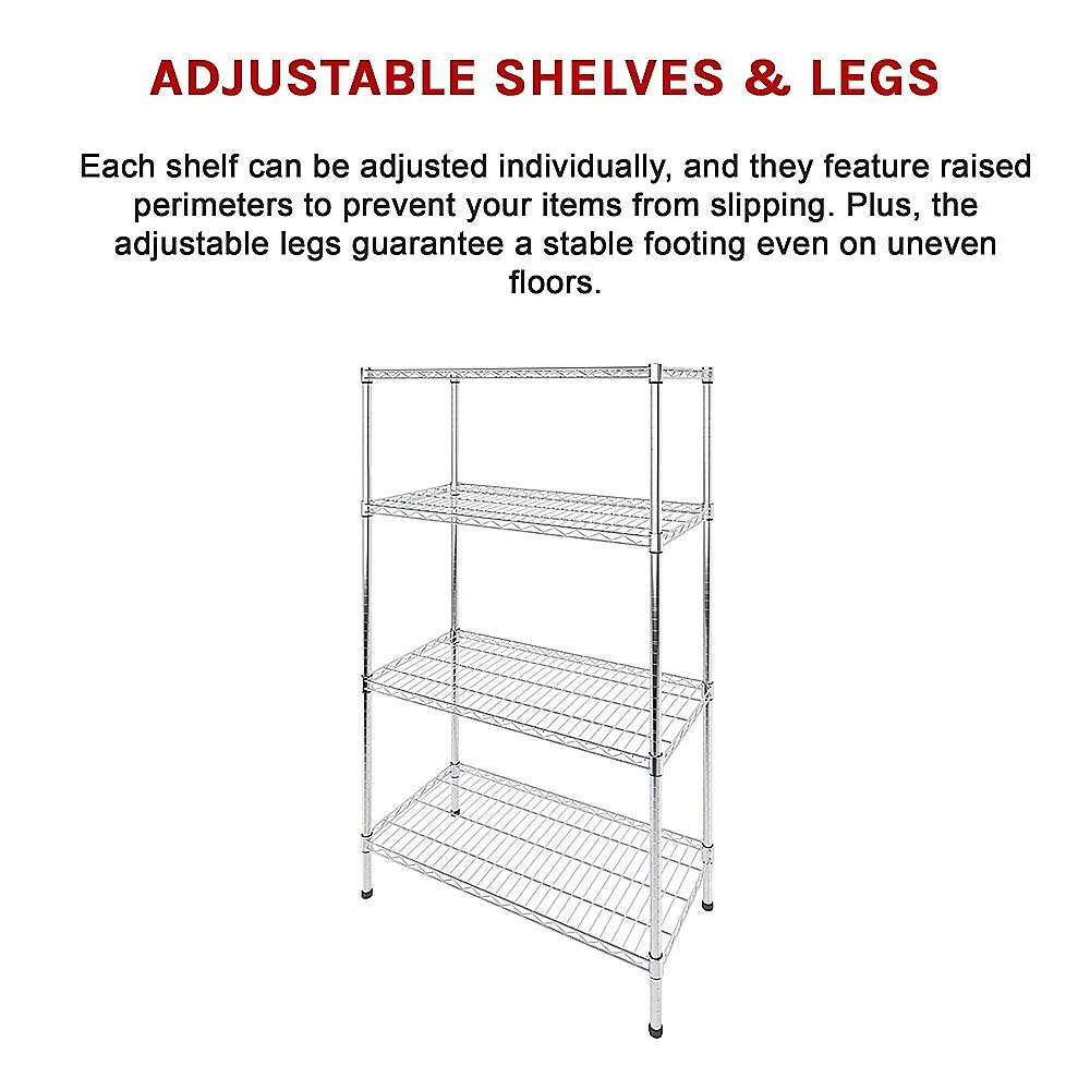 With adjustable legs, this unit ensures both security and stability. You can customize the shelf height to suit your specific needs, thanks to the adjustable shelves. The raised edges of the shelves provide an extra layer of assurance, keeping your items securely in place as you arrange them.