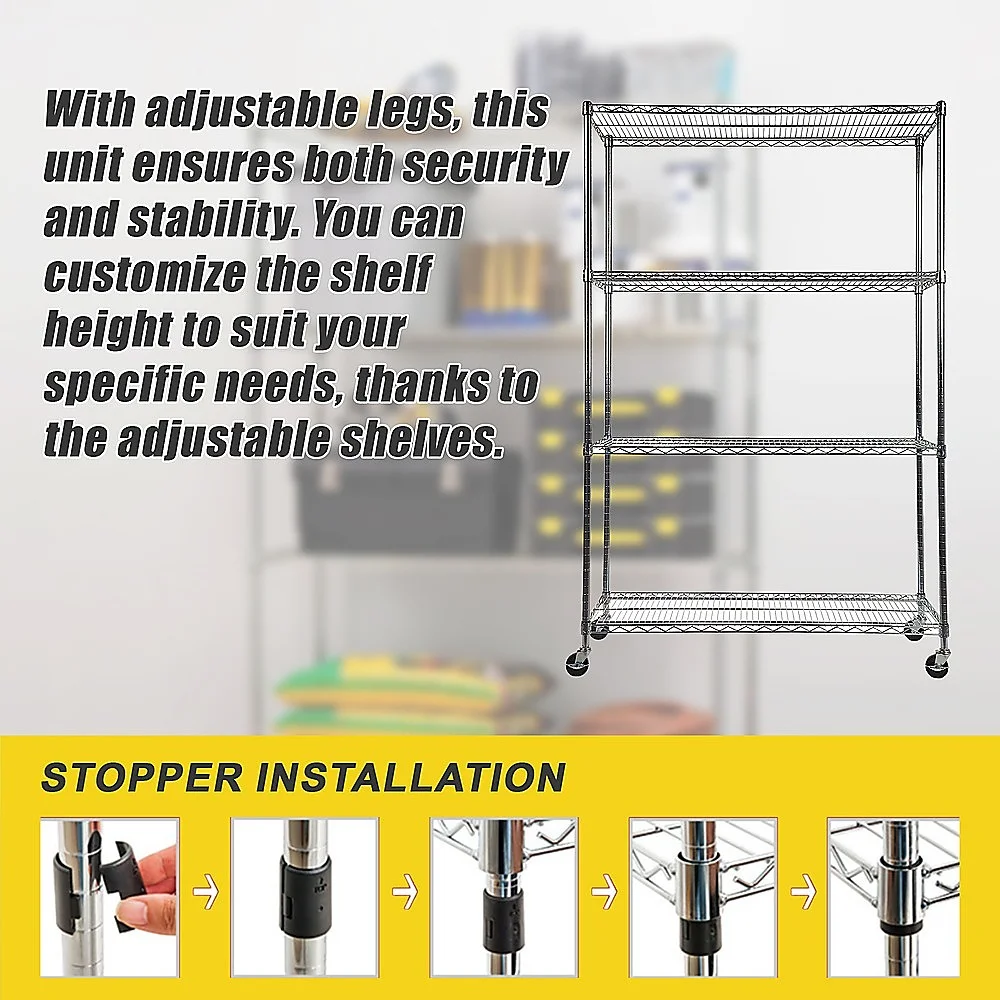 Say goodbye to your organization worries at home and work with the robust and long-lasting four-shelf storage unit.
