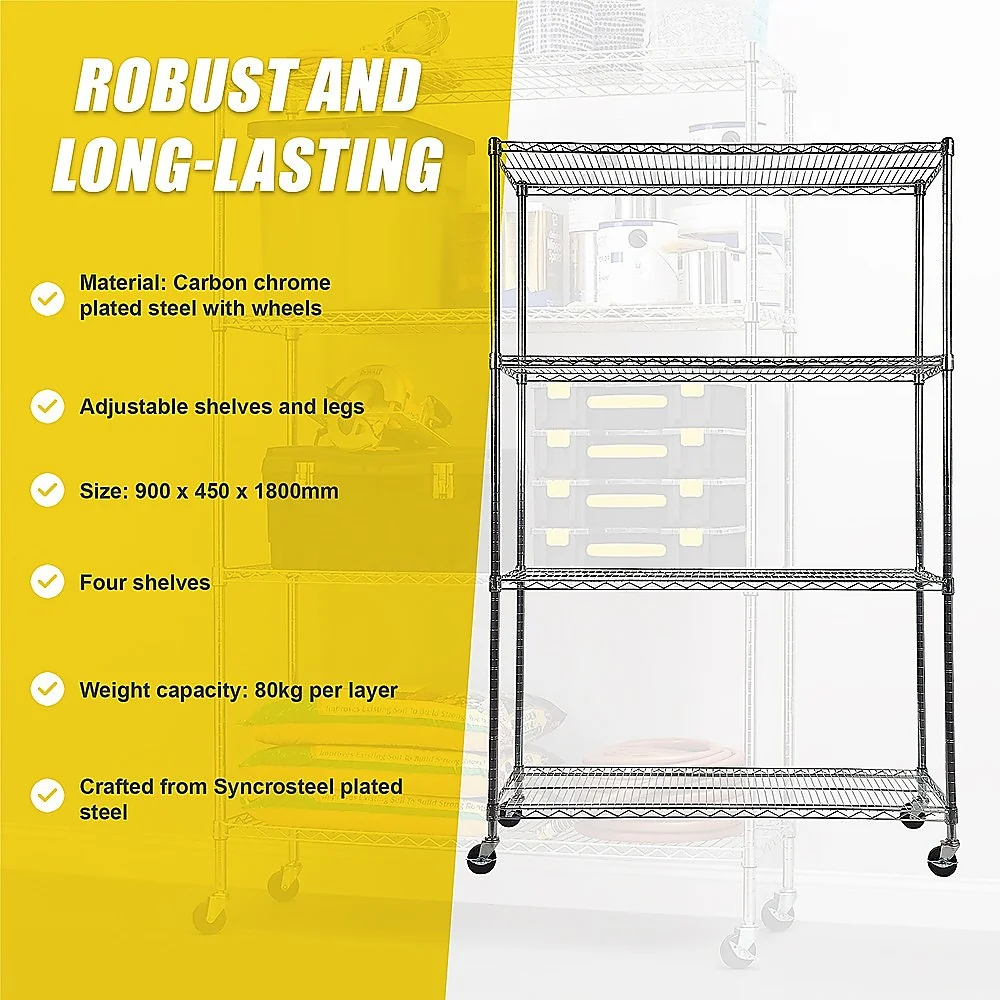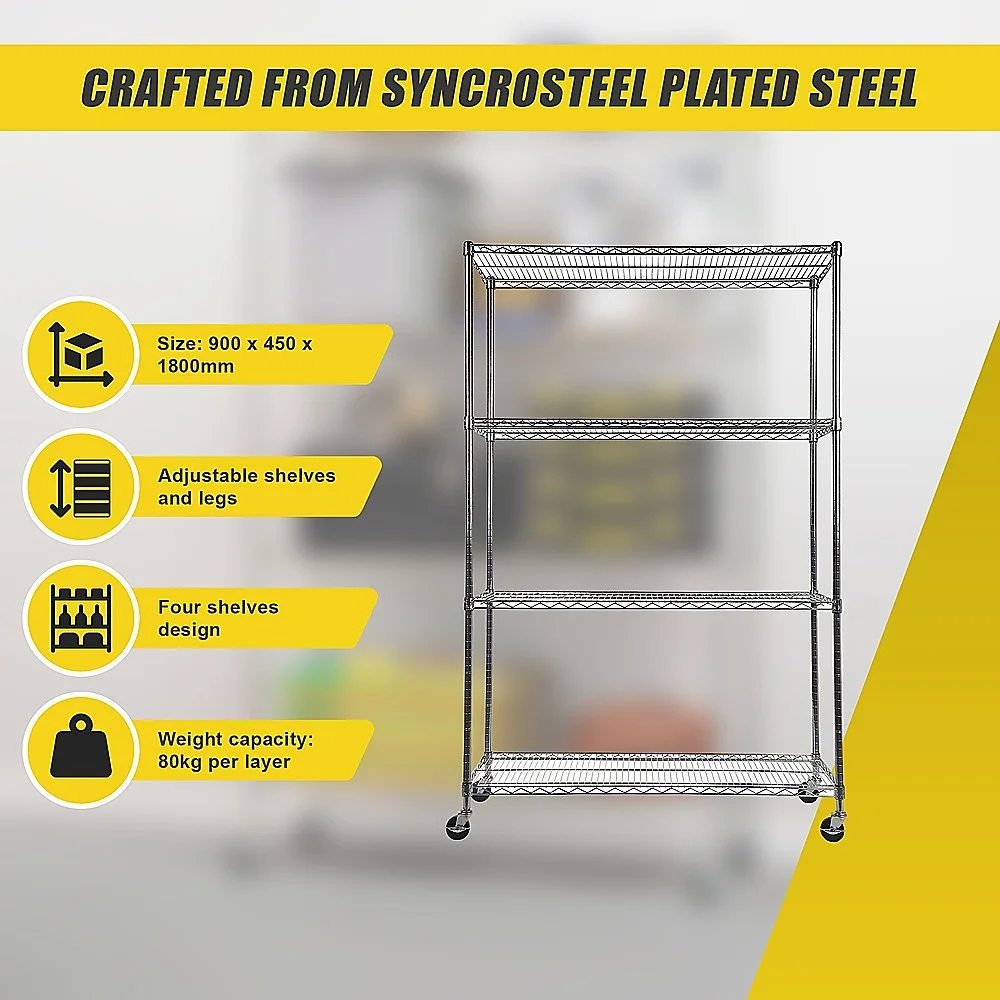 When it comes to strength and dependability, this four-shelf storage unit excels. Crafted from Syncrosteel plated steel, it is designed to withstand the test of time. The wire shelving adds a sense of lightness and mobility, granting you unmatched versatility to adapt to your ever-changing requirements.