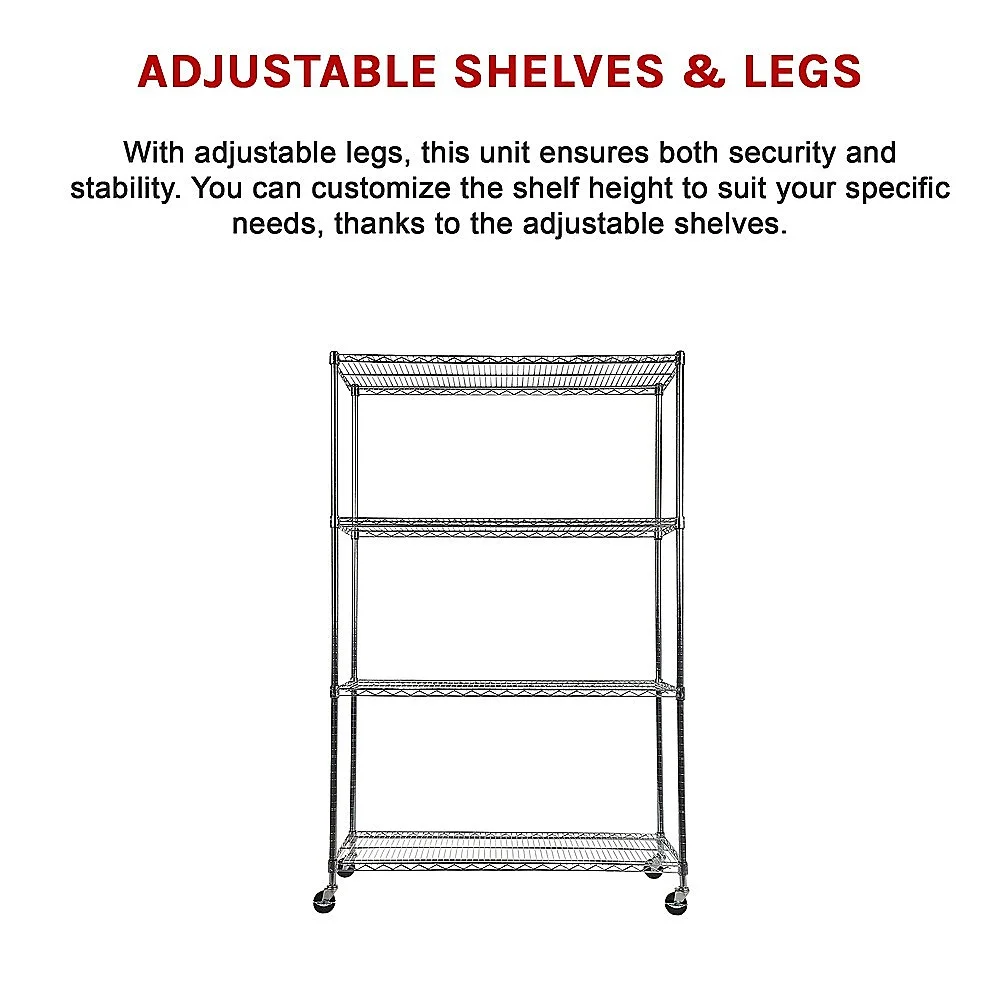 With adjustable legs, this unit ensures both security and stability. You can customize the shelf height to suit your specific needs, thanks to the adjustable shelves. The raised edges of the shelves provide an extra layer of assurance, keeping your items securely in place as you arrange them.