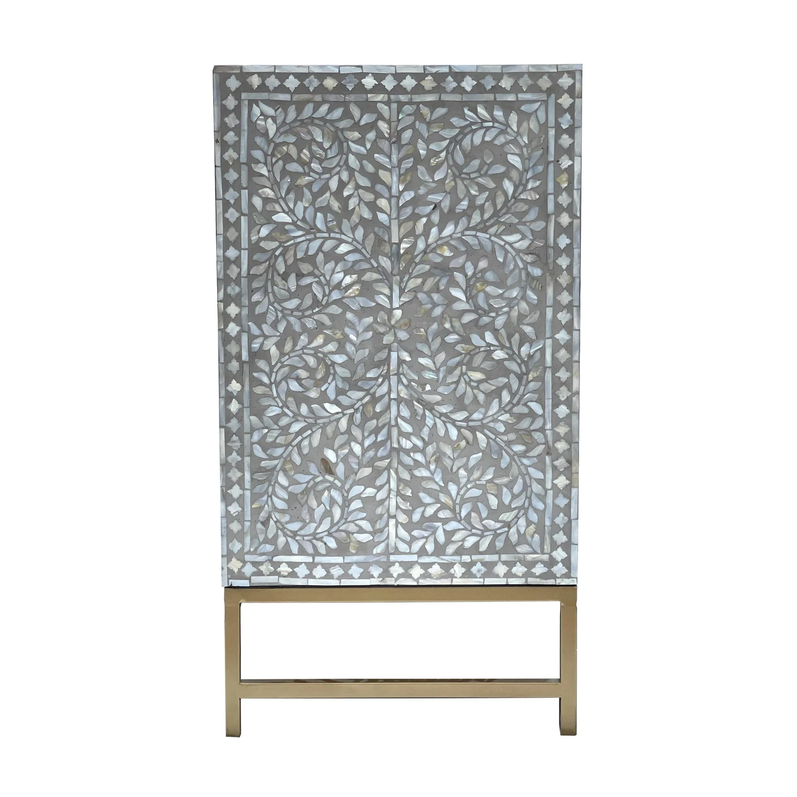 Our hand-crafted Mother of Pearl furniture is expertly crafted, imparting each piece with a unique character of its own. Such pieces may bear small markings, smudges, glue spots, and other subtle details all of which contribute to its one-of-a-kind look. Patterns may differ from those shown in its original photos. Note that these details are not faults and are instead part of the charm of such hand-crafted items. To maintain these pieces, they should not be used outdoors, nor should cleaning chemicals be used. Instead, use a lint-free cloth, and also make sure not to place these pieces near heat or sunlight, as this may cause fading.