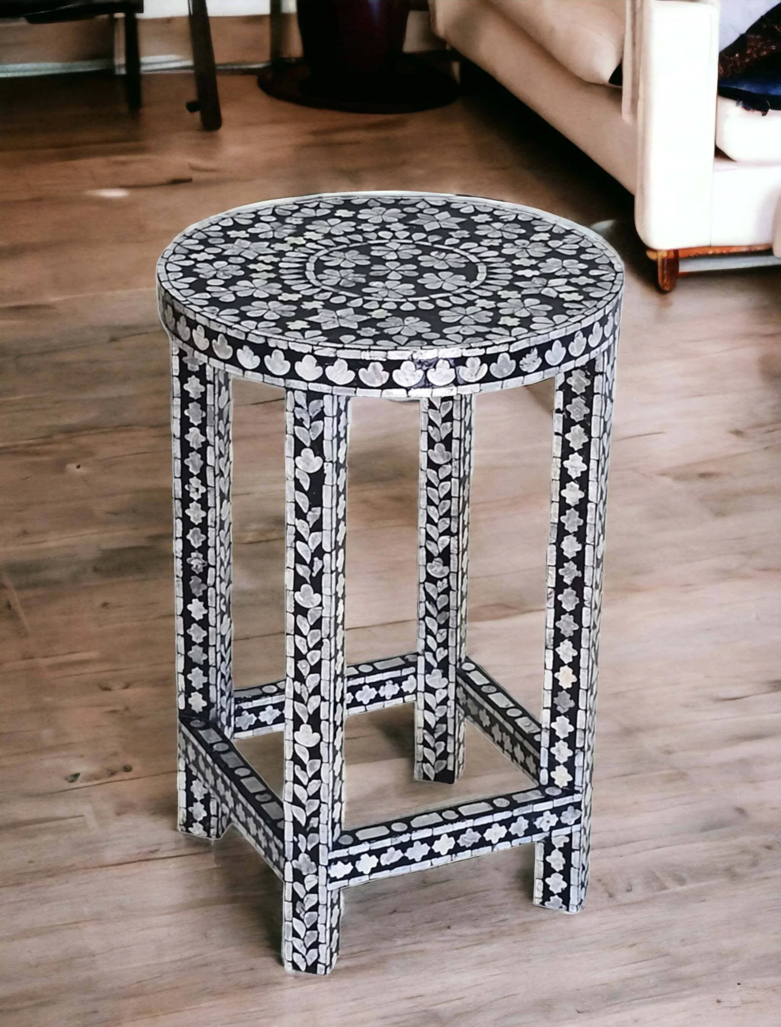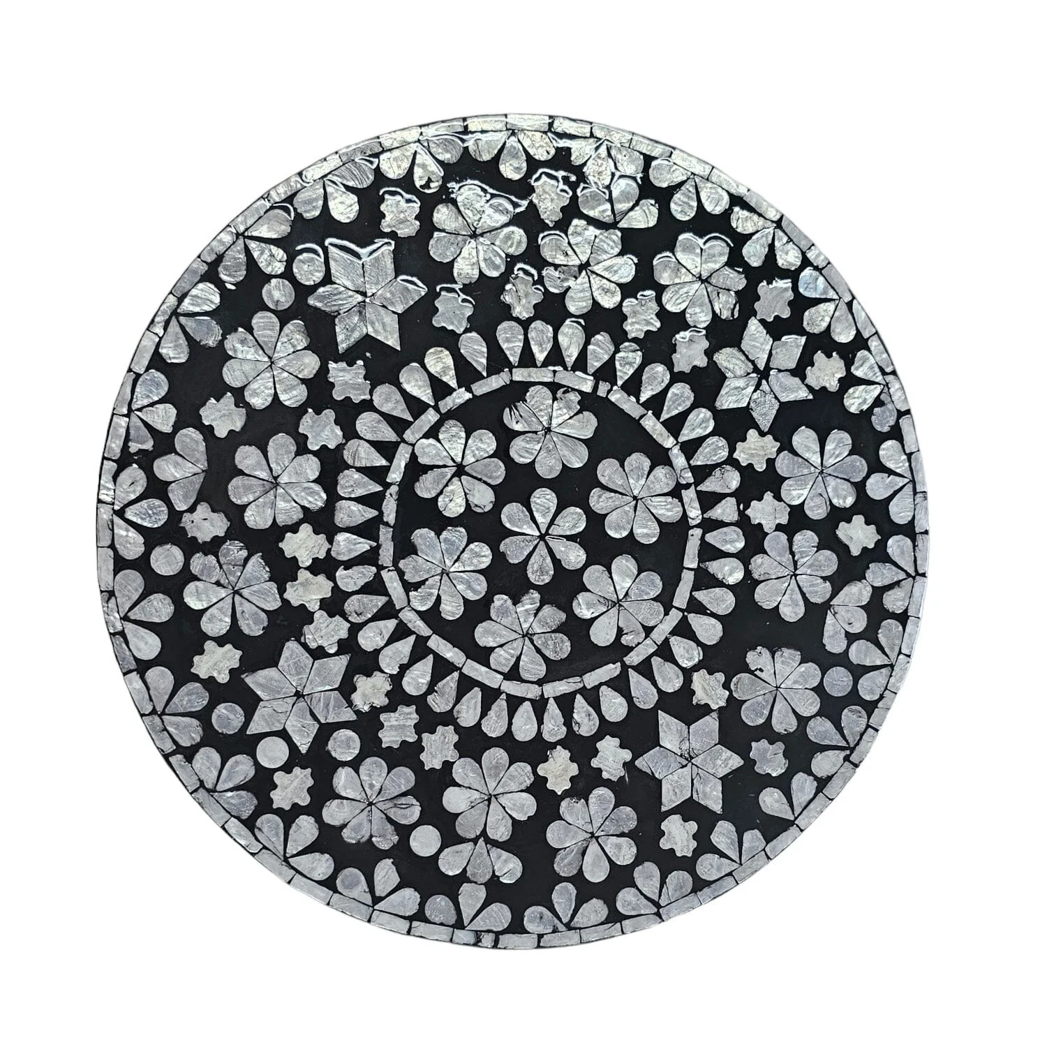 Introducing the Monochrome Splendour Mother of Pearl Side Table, a captivating addition to our exclusive Mother of Pearl range. This exquisite side table showcases a stunning hand-laid mosaic finish in a sophisticated monochrome palette. The intricate mosaic pattern, meticulously crafted by skilled artisans, adds a touch of elegance and artistry to your living space. The clean lines and sleek design of the table complement the timeless beauty of the monochrome mosaic, making it a versatile choice for various decor styles. Crafted with attention to detail and quality, this side table offers both style and functionality. Whether used as a standalone accent piece or paired with other furniture, the Monochrome Splendour Mother of Pearl Side Table brings a sense of refined luxury to your interior decor. Elevate your space with this exceptional piece that combines exquisite craftsmanship and sophisticated design.