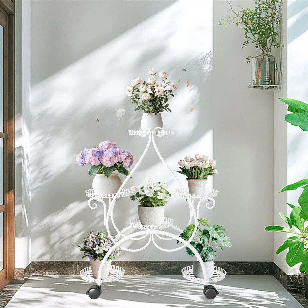 Movable Metal Plant Stand Garden Cart Indoor/Outdoor Decor
