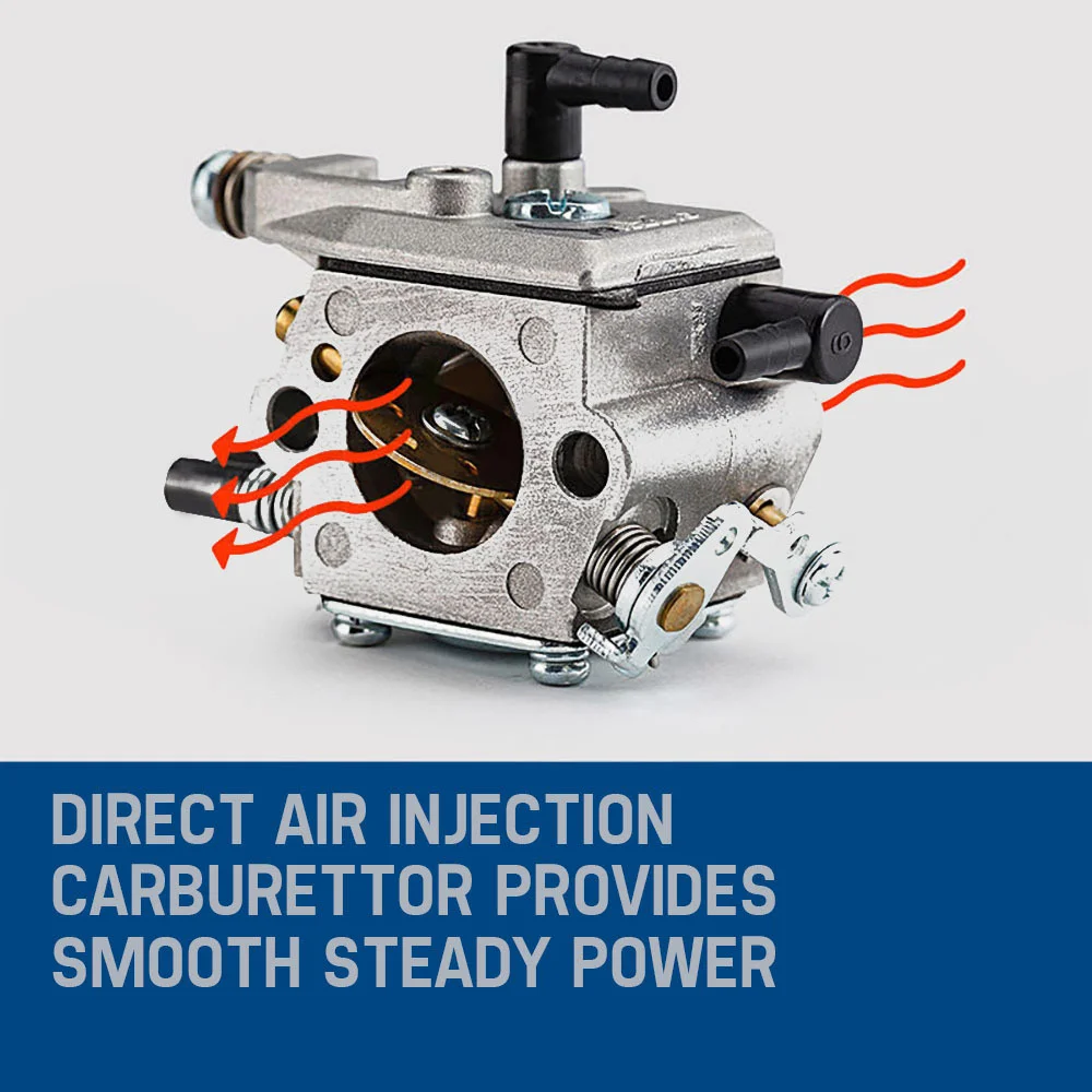 The MTM 58SX Mark II Chainsaw is the ultimate wood cutting companion. Whether you're pruning hedges, cutting firewood or taking down whole trees. This fast revving, perfectly balanced unit packs serious punch with its patented air injection carburettor and intake system delivering more grunt.