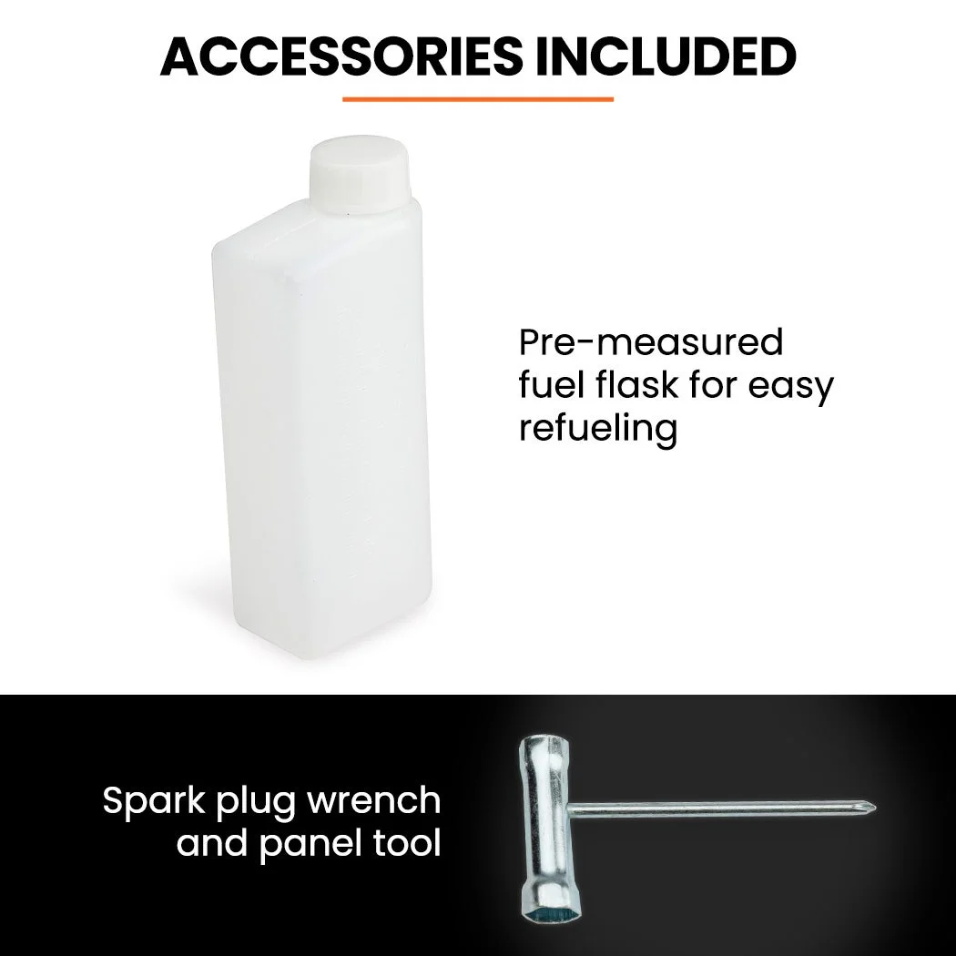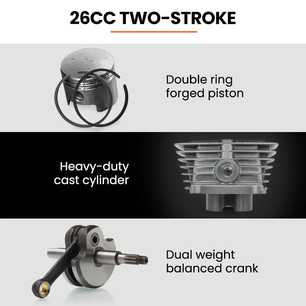 The MTM BPX435 26cc Petrol Leaf Blower is purpose-built for fast, efficient yard clearing with professional-grade performance in a compact, portable form. Its high-speed 2-stroke engine delivers 0.7kW of power at up to 7500rpm, driving an air velocity of 180km/h to quickly shift leaves, twigs, and debris from your path. An upgraded anti-vibration system with four-point absorption and reinforced cushions reduces operator fatigue during extended use.
